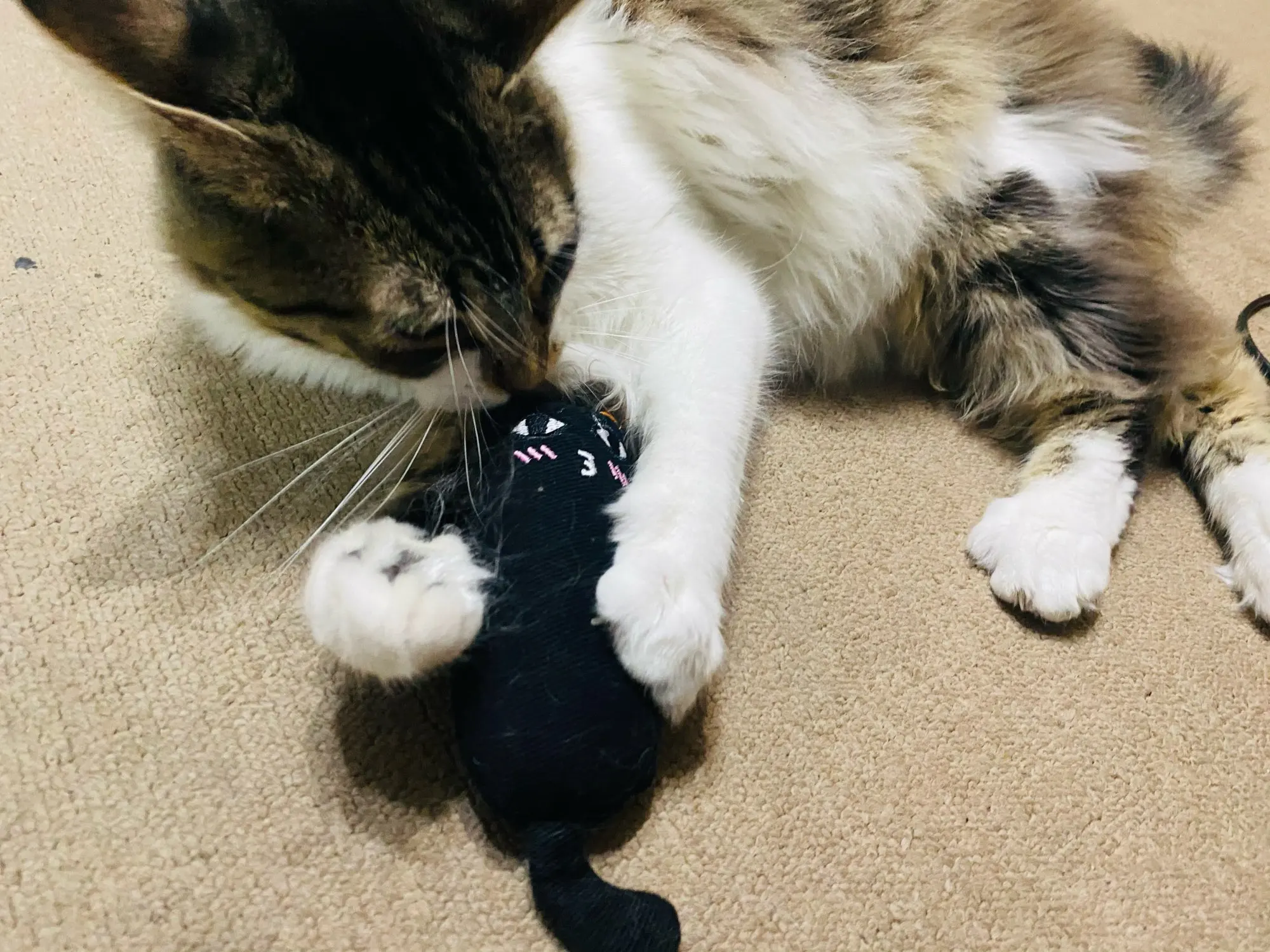 Кошка играет с удовольствием.