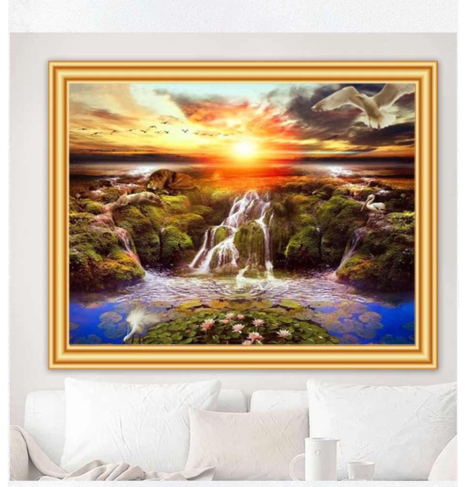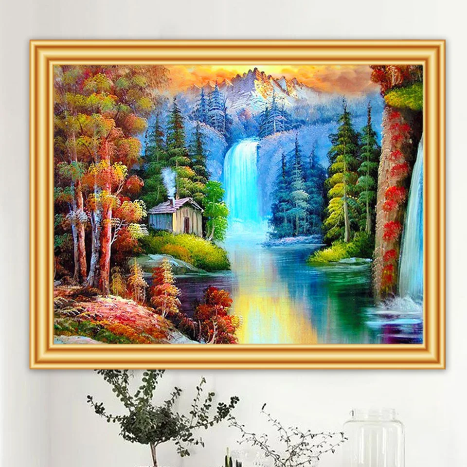 Алмазная 5D картина сделай сам, Набор для вышивки крестиком водопад, пейзаж, полноразмерная вышивка, мозаика, искусство, картина Стразы, домашний декор