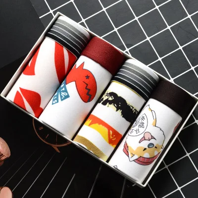 Трусы-боксеры мужские 4 шт., дышащие удобные трусы с мультяшным принтом, размеры L-2XL