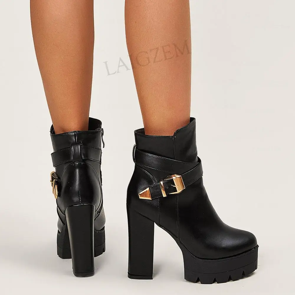 Женские ботильоны на платформе SEIIHEM, черные ботинки на толстом высоком каблуке с круглым носком, женская обувь из искусственной кожи, размеры 36 37 38 42 43