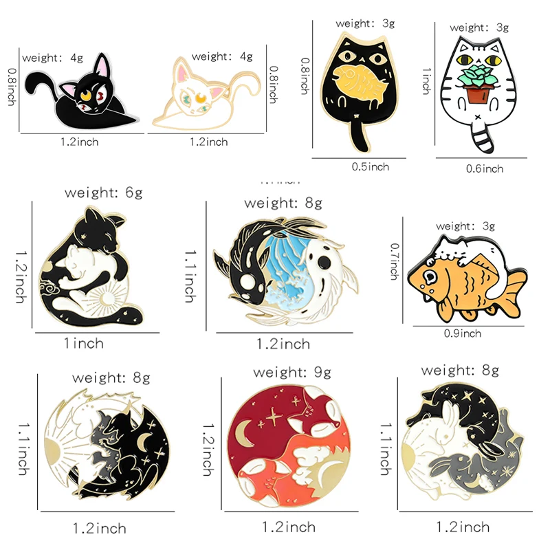 Милые коты рыбы, эмаль, брошь с застежкой, черный, белый цвет Луна кошки дневной и ночной режимы лиса Koi кролик летучая мышь брошь в виде волка отворотом, ювелирное изделие, подарок