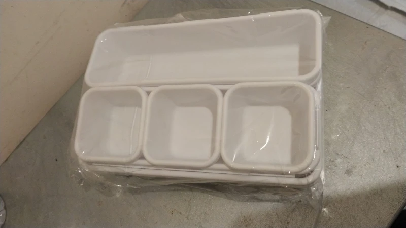 Время доставки было соблюдено. Два из 8 отсеков прибыли с небольшими сломанными кнопками по углам, к сожалению. Они пригодны для использования, но обидно, иначе было бы 5 звезд.
