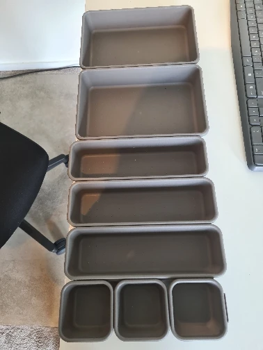 Все правильно, они как и ожидалось. Одна из маленьких коробок имеет небольшую царапину, но не стоило ее возвращать. Ящик для стола моей дочери был великолепен с ними!
