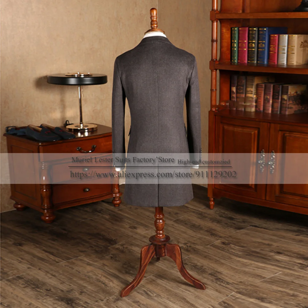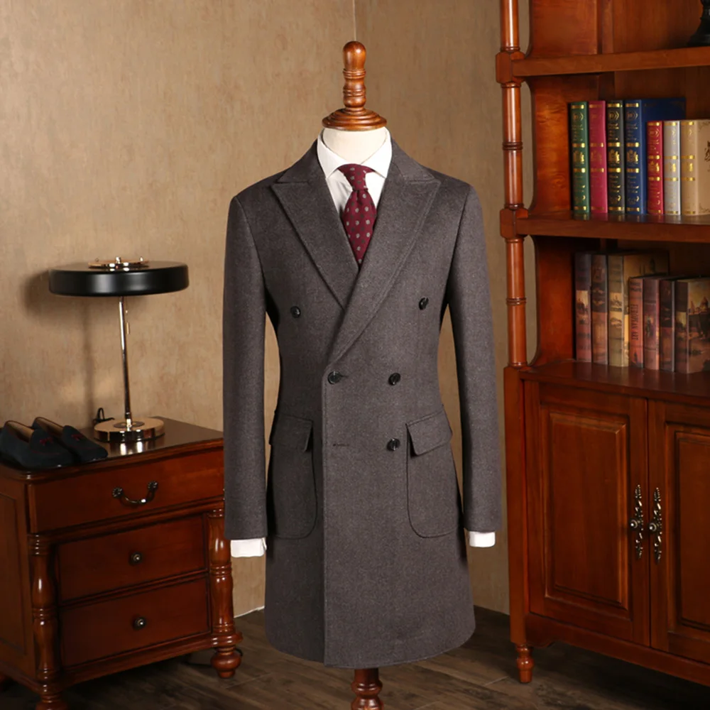 Мужское твидовое пальто, коричневое длинное пальто, деловой двубортный пиджак для жениха из смесовой шерсти