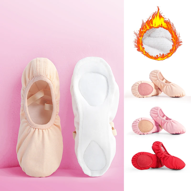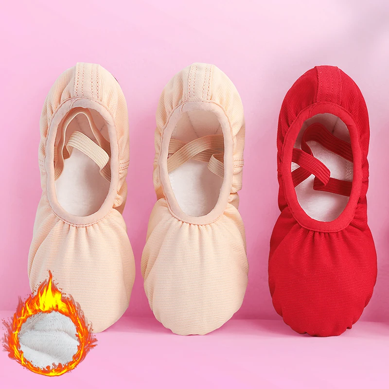 Детская теплая парусиновая танцевальная обувь для девочек; Женские шлепанцы для занятий гимнастикой и фитнесом; Сезон осень-зима; Балетки