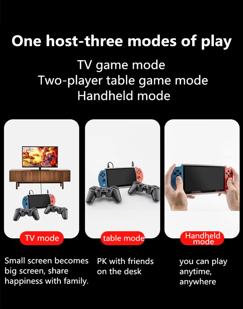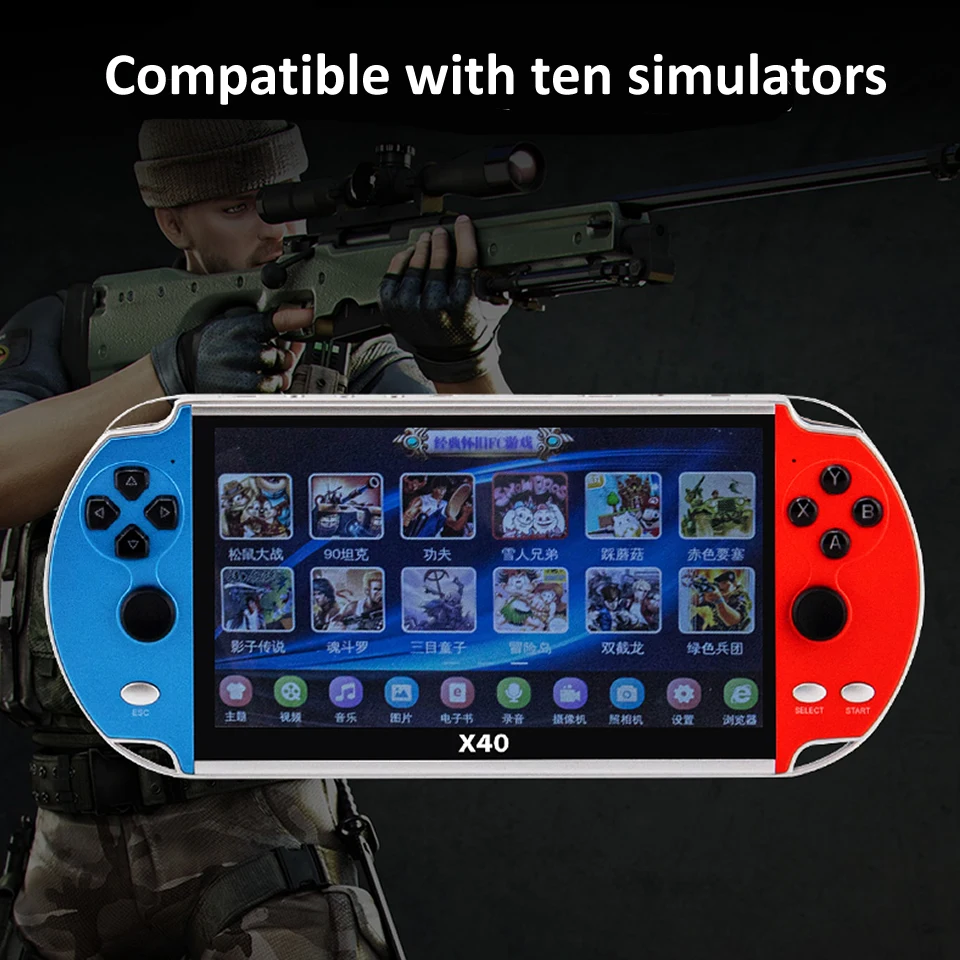 Модель: X40Экран: 7,1 дюйм (ов)Встроенные игры: 3000Режим работы: кнопка, джойстик, ручкаМетод загрузки: подключение к usb-порту компьютера для загрузкиФормат музыки: Поддержка формата MP3Формат видео: поддержка формата MP4Расширение памяти: поддержка расширения tf-картыЕмкость аккумулятора: 3000 мАчТВ подключение: поддержка ТВ выходРежим битвы: Поддержка двух игроковВстроенная память: 16GФункции продукта: играть в игры/музыку/Фильмы/Электронные книги/Съемки/фотографии и т. Д.Тип игры: Поддержка FC/GBA/GBC/MD/NES/SFC/PS/аркадные игры