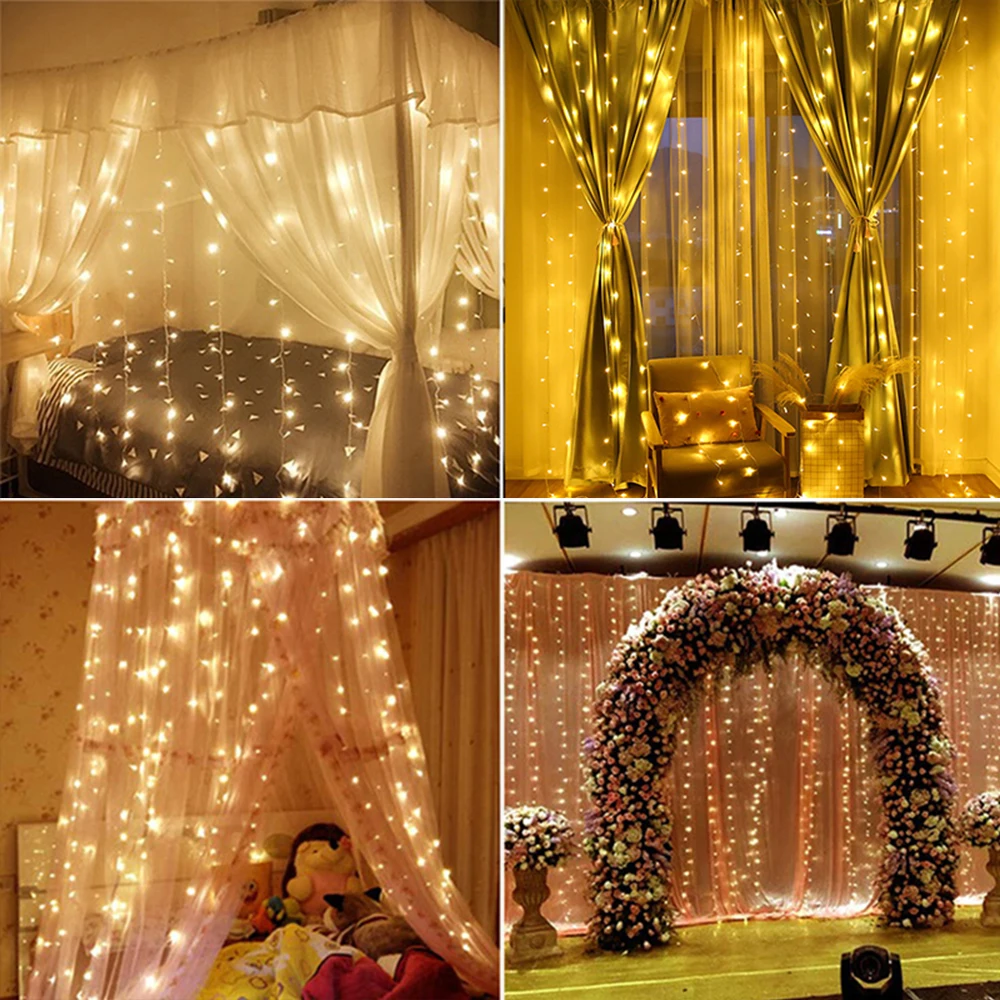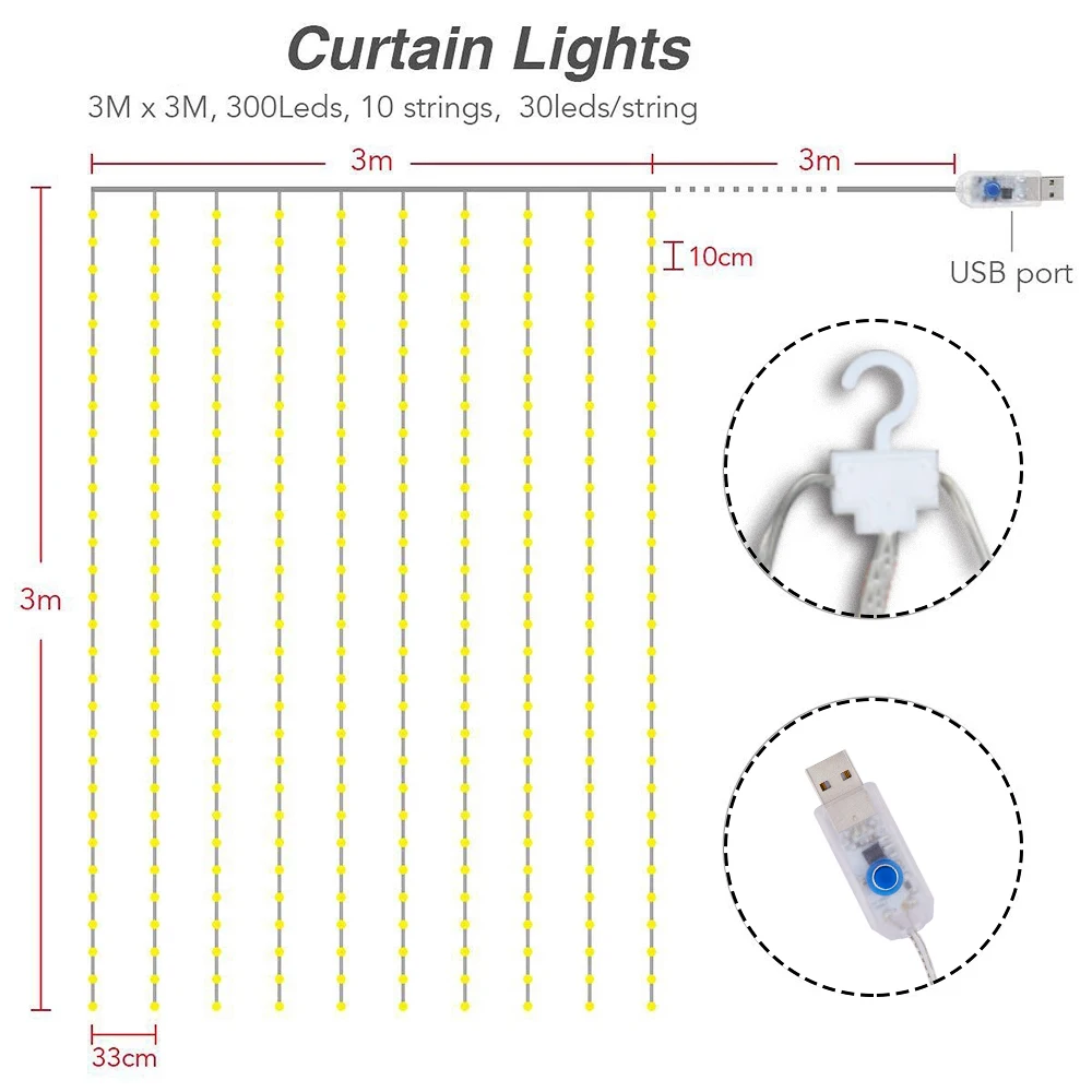СВЕТОДИОДНАЯ Гирлянда для занавесок, гирлянда с питанием от USB-аккумулятора, гирлянда с дистанционным управлением для свадьбы, вечеринки, рождественские украшения, декоративные гирлянды для комнаты нового года