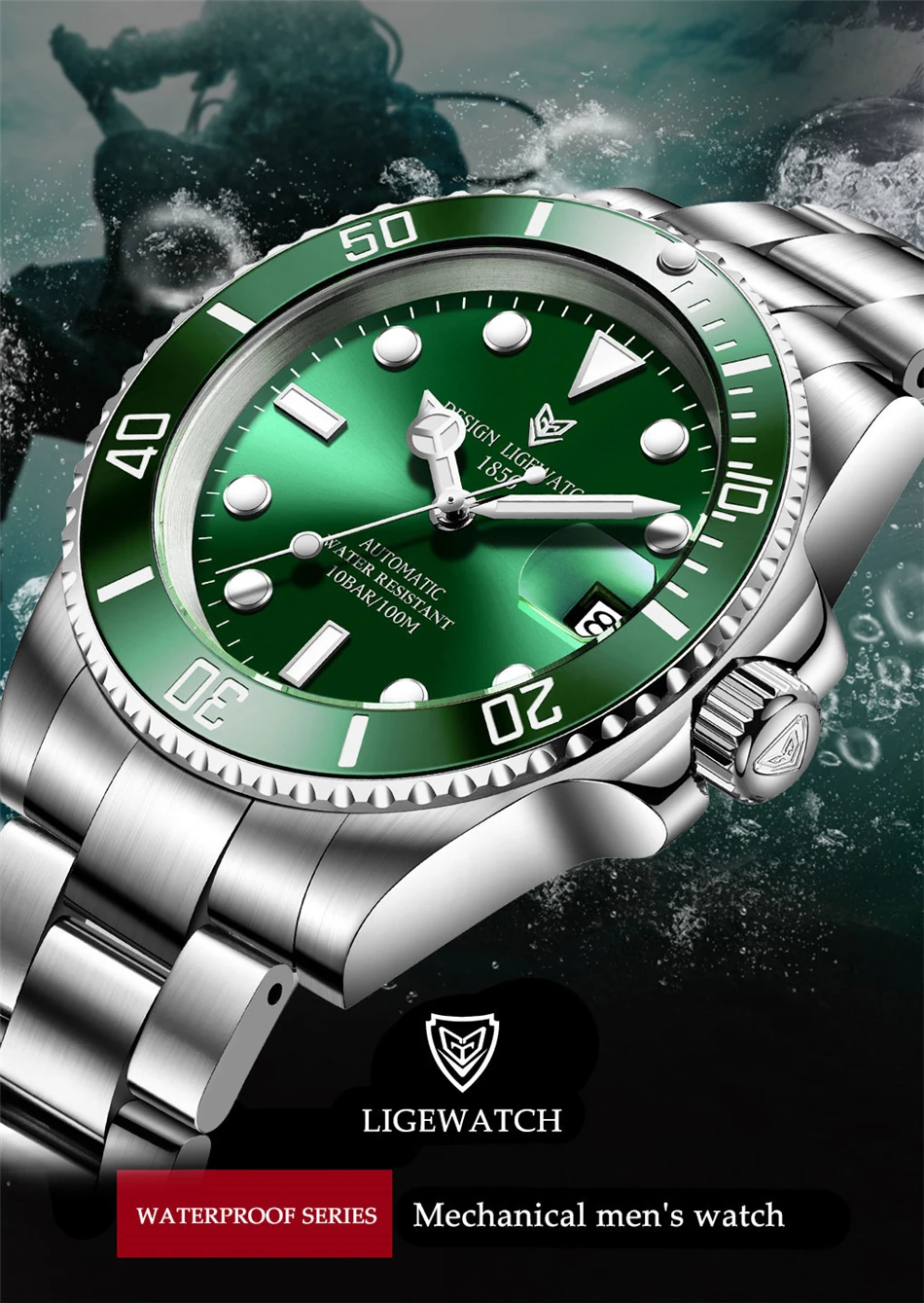 Часы LIGE мужские с автоподзаводом и турбийоном, водонепроницаемые, из нержавеющей стали 316L