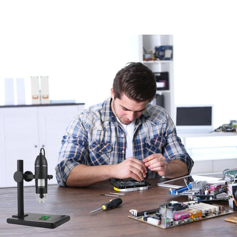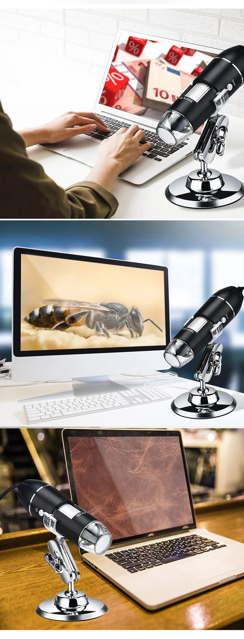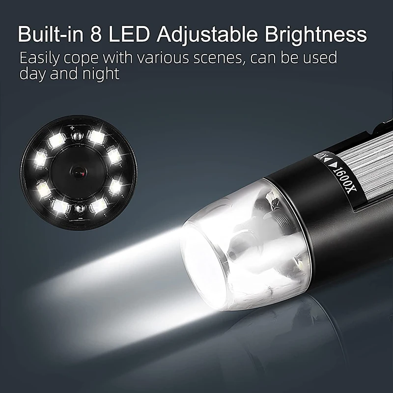 Цифровой микроскоп, ручной портативный электронный эндоскоп с USB-интерфейсом и лупой 8 светодиодов, 1600x 1000X, с металлической подставкой