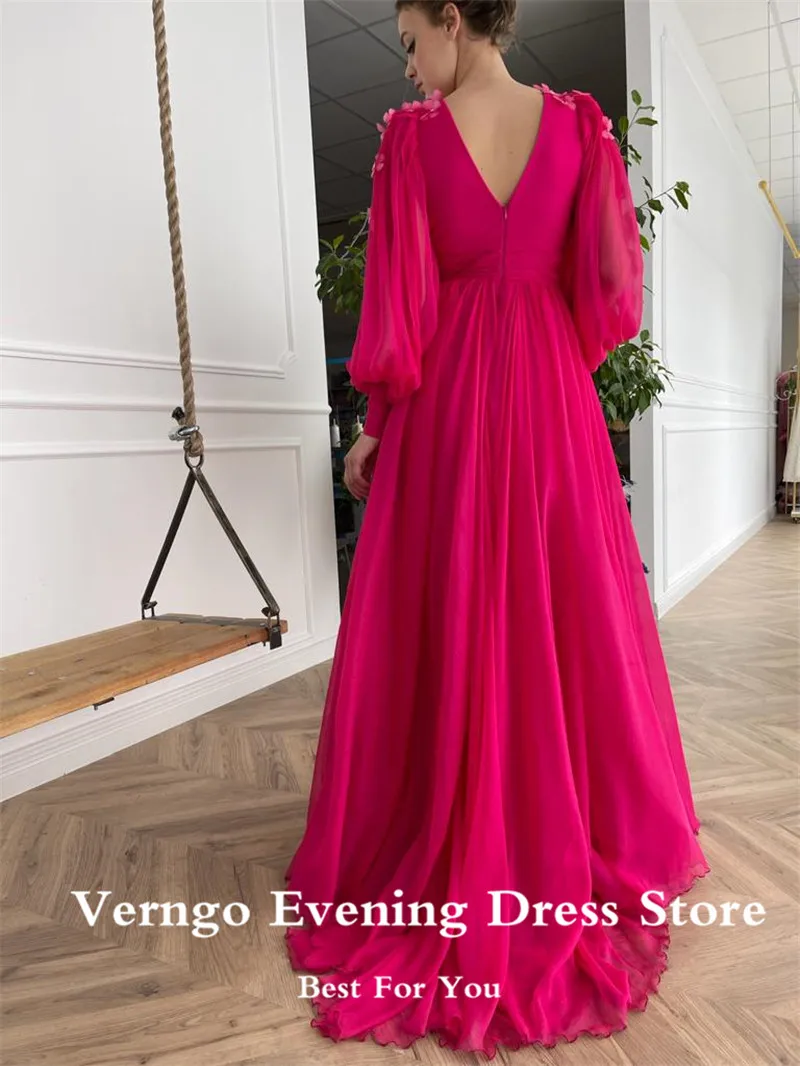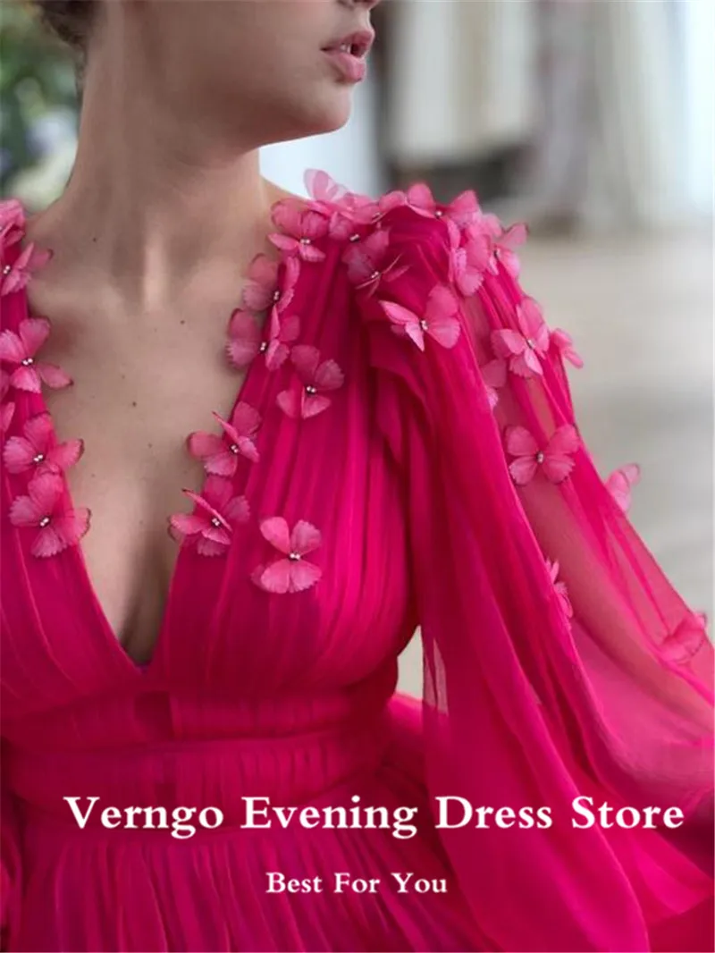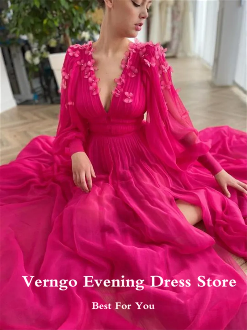 Платье вечернее шифоновое, с длинными рукавами-фонариками, V-образным вырезом, разрезом и цветами 3 D, 2021