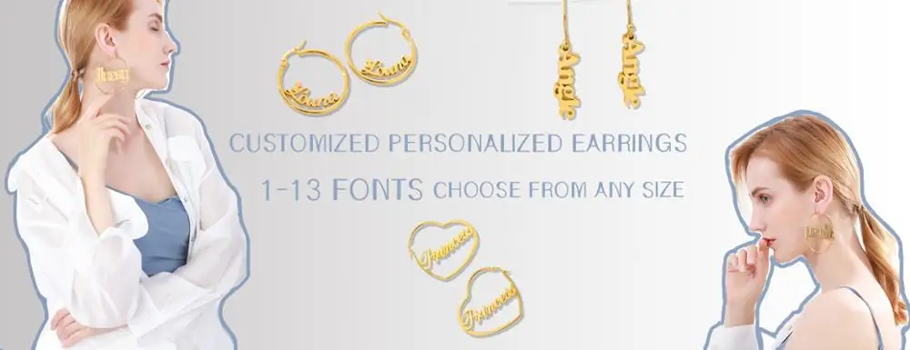 Цвет: Золотой, Платиновый, розовое золотоУзор: названия, буквы или другие узорыУпаковка: упаковка для картМесто отгрузки: Китай, США, ВеликобританияСтиль: индивидуальность, изящность, изысканность и трендТип: женские серьги из нержавеющей стали