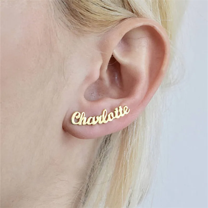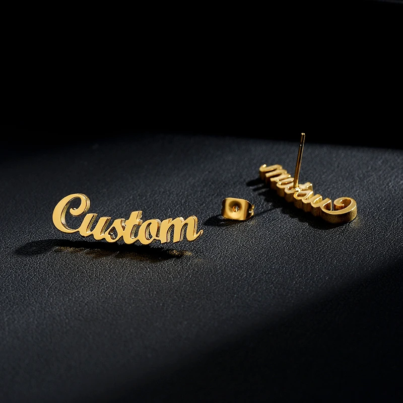 Stainless Steel Gold Stud Earrings Aretes De Mujer Custom Name Pers...