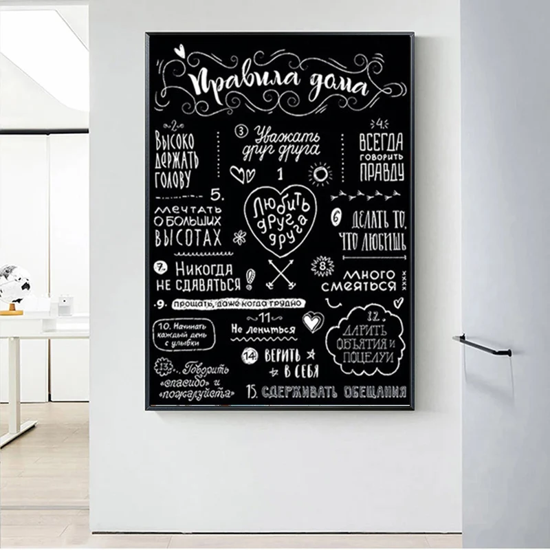 Декор для дома, Семейные правила, черно-белая Картина на холсте, ка...