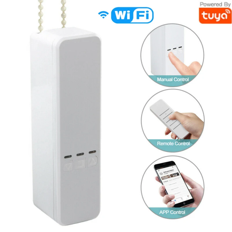 Ручные жалюзи, управляемые цепочкой, с нашим контроллером, открываются и закрываются автоматически. С приложением или пультом дистанционного управления.