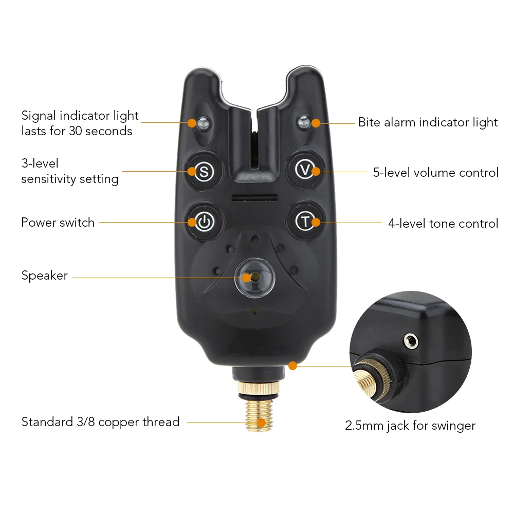 Этот набор инструментов для рыбалки включает в себя регулируемую подставку для удочки, 3 сигнализатора для укуса и 3 шт. рыболовные приманки для Свингеров, прекрасный подарок для любителей рыбалки.Особенности:Стержень стенд:Прочная и прочная конструкция из алюминиевого сплава.Легко установить и демонтировать.Масштабируйте горизонтально и вертикально.Острый и стабильный четырехточечный контакт с заземлением для более прочной фиксации.Поставляется с сумкой для переноски, удобно складывать и транспортировать.Подходит для рыбалки в водоемах, реках, водоемах, озерах и т. Д.Открытых водоемах, которое предупреждает о месте клева:Регулируемый тон, громкость и чувствительность для удовлетворения ваших потребностей.Звуковое и визуальное оповещение позволит вам не укусить и облегчает вашу рыбалку.Легкий и водостойкий.2,5 мм гнездо для внешних продуктов.Приманка секс:Отвинтите головку и положите в светящаяся палочка (не включайте) в качестве индикатора в темноте.Металлическая головка для натяжения линии для улучшения чувствительности.Легкое соединение с сигнализацией для рыбалки (не входит в комплект) для легкой рыбалки.Технические характеристики:Материал: алюминиевый сплав, металл, АБСЦвет: черный и синийДлина подставки: регулируемая 70-130 см/31,1-52,2 дюймаДлина цепочки: 23 смКоличество светодиодов: 2• Цвет СВЕТОДИОДА: синийБатарея: 1*9 В батарея (не входит в комплект)Диаметр винта: 0,8 смРазмер упаковки: 81*21*7 см/31,9*8,3 * 2.8inВес упаковки: 2700 г/6 фунтовВ комплект входит:1 * Полюс стенд2 * перекладины4 * короткие бар3 * u-образный стержень3 * V-shape Стержень Отдыха головы3 * открытых водоемах, которое предупреждает о месте клева3 * свингер1 * сумка для хранения