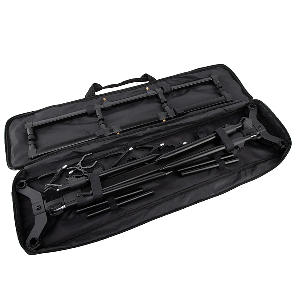Особенности:Прочная и прочная конструкция из алюминиевого сплава.Легко установить и демонтировать.Масштабируйте горизонтально и вертикально.Острый и стабильный четырехточечный контакт с заземлением для более прочной фиксации.Поставляется с сумкой для переноски, удобно складывать и транспортировать.Подходит для рыбалки в водоемах, реках, водоемах, озерах и т. Д.Технические характеристики:Материал: алюминиевый сплавТип: A / B (опционально)Цвет: черныйРазмер упаковки: 81*21*7 см/31,9*8,3 * 2.8inВес упаковки: 2,4 КгВ комплект входит:1 * Полюс стенд2 * перекладины4 * короткие бар3 * u-образный стержень3 * V-shape Стержень Отдыха головы1 * сумка для хранения