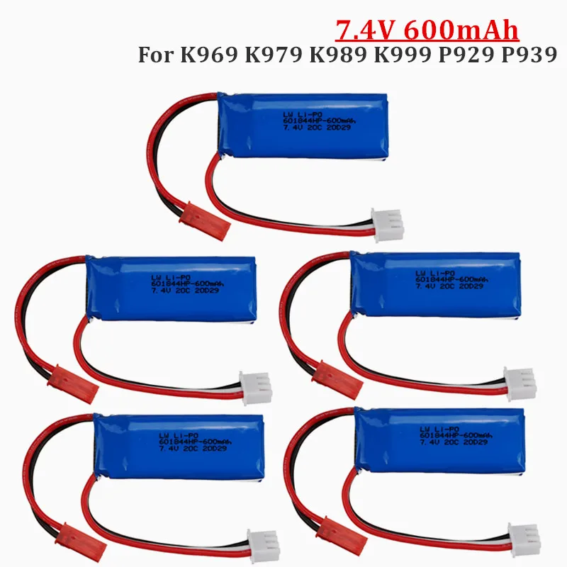Оригинальная литий-полимерная батарея 7,4 в 600 мАч 20C для WLtoys K969 K979 K989 K999 P929 P939, запчасти для радиоуправляемых автомобилей 2s 7,4 В, батарея 5 шт.лот