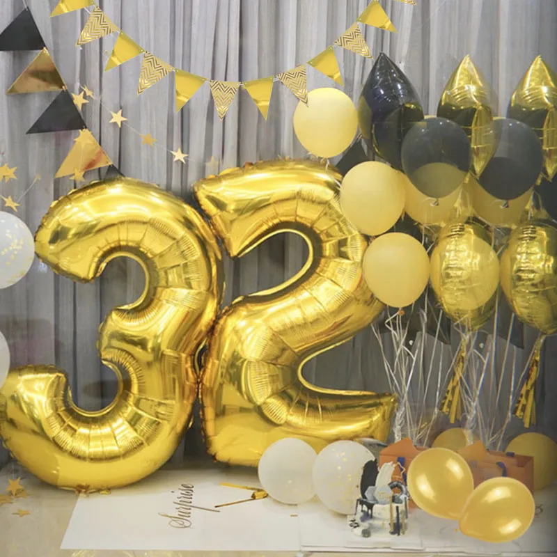Шары воздушные из фольги, 3240 дюйма, Золотое серебряное число дюйма