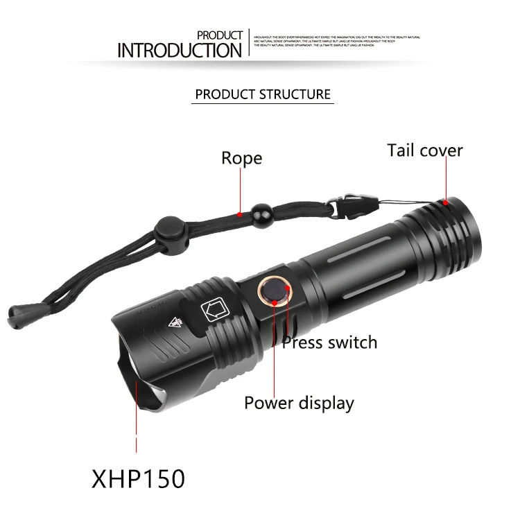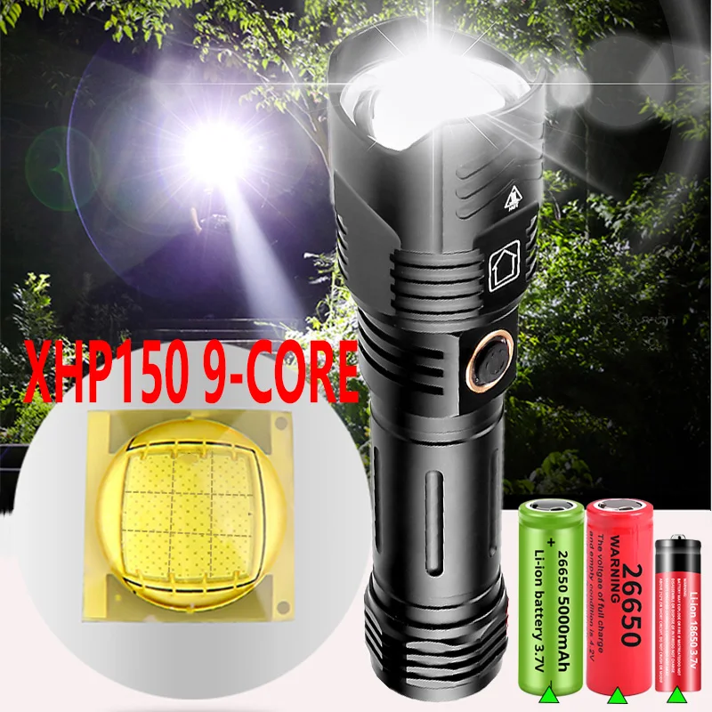 Фонафонарь XHP160, 5000 лм светодиодный IPX-6 мА ч, водонепроницаемый, с аккумулятором 2665018650