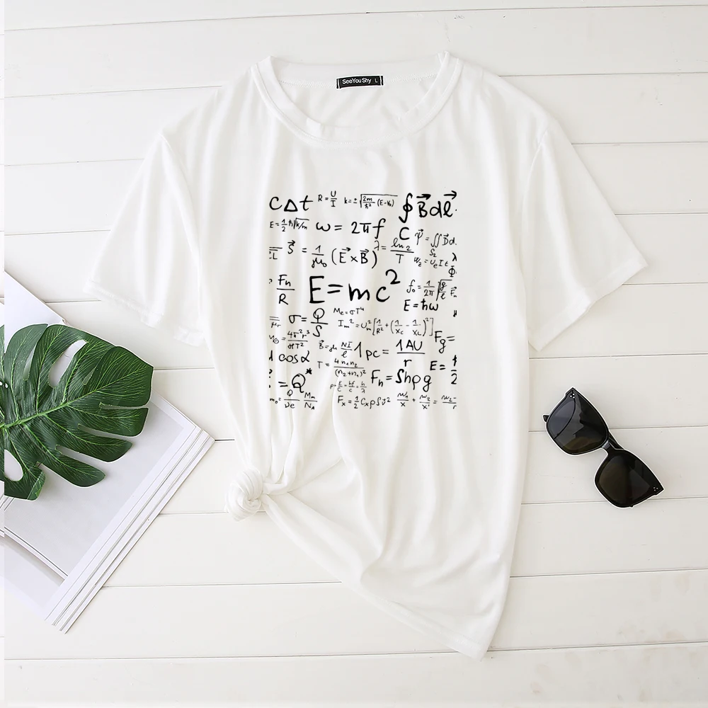 Женские футболки с принтом математической формулы Seeyoushy, уличная одежда, рубашки для женщин, повседневный Топ в стиле Харадзюку, женская одежда с коротким рукавом для женщин