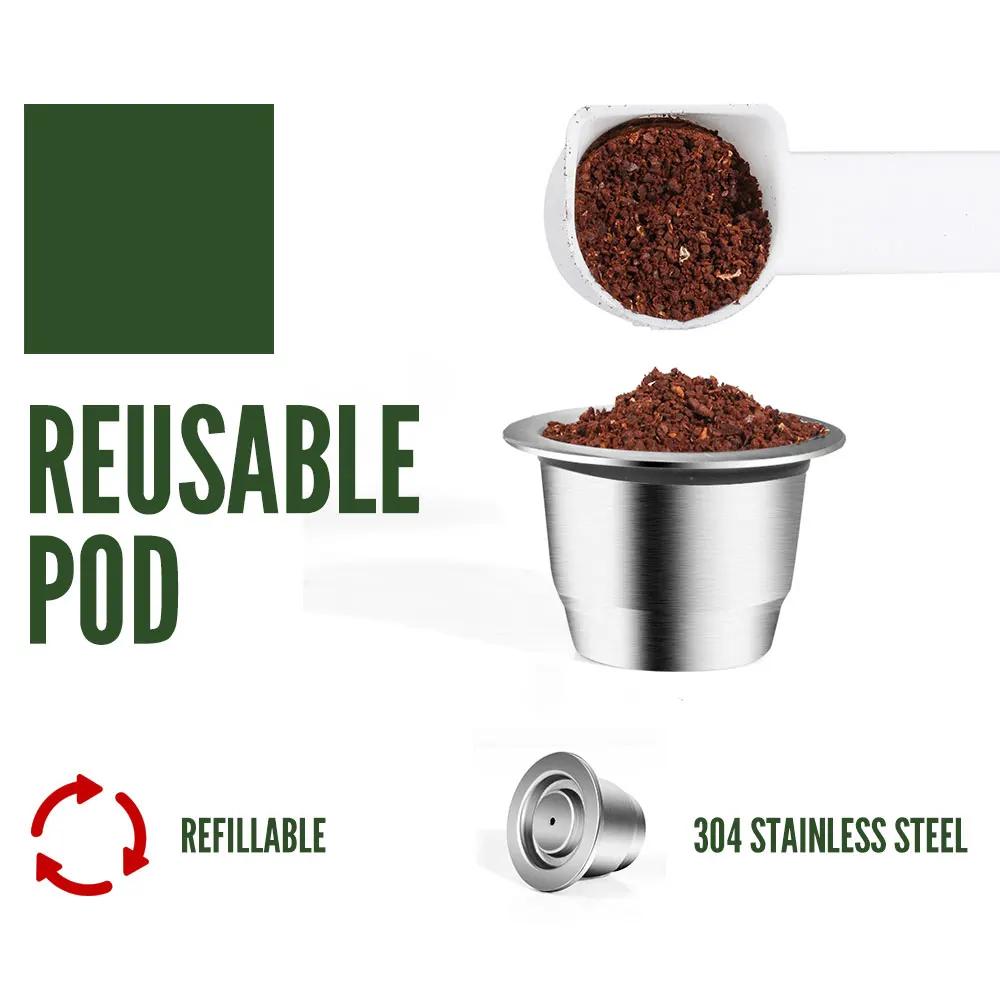 3. Сделайте свой DIY великолепным: Используйте свой любимый кофе, Экономьте деньги и Защитите окружающую среду. 4. Используйте высококачественную капсулу из нержавеющей стали с вашей машиной из серии INISSIA, PIXIE, CITIZ. 5. С прилагаемыми аксессуарами, вы можете легко заполнить капсулу из нержавеющей стали с вашим личным кофе, чая или какао.