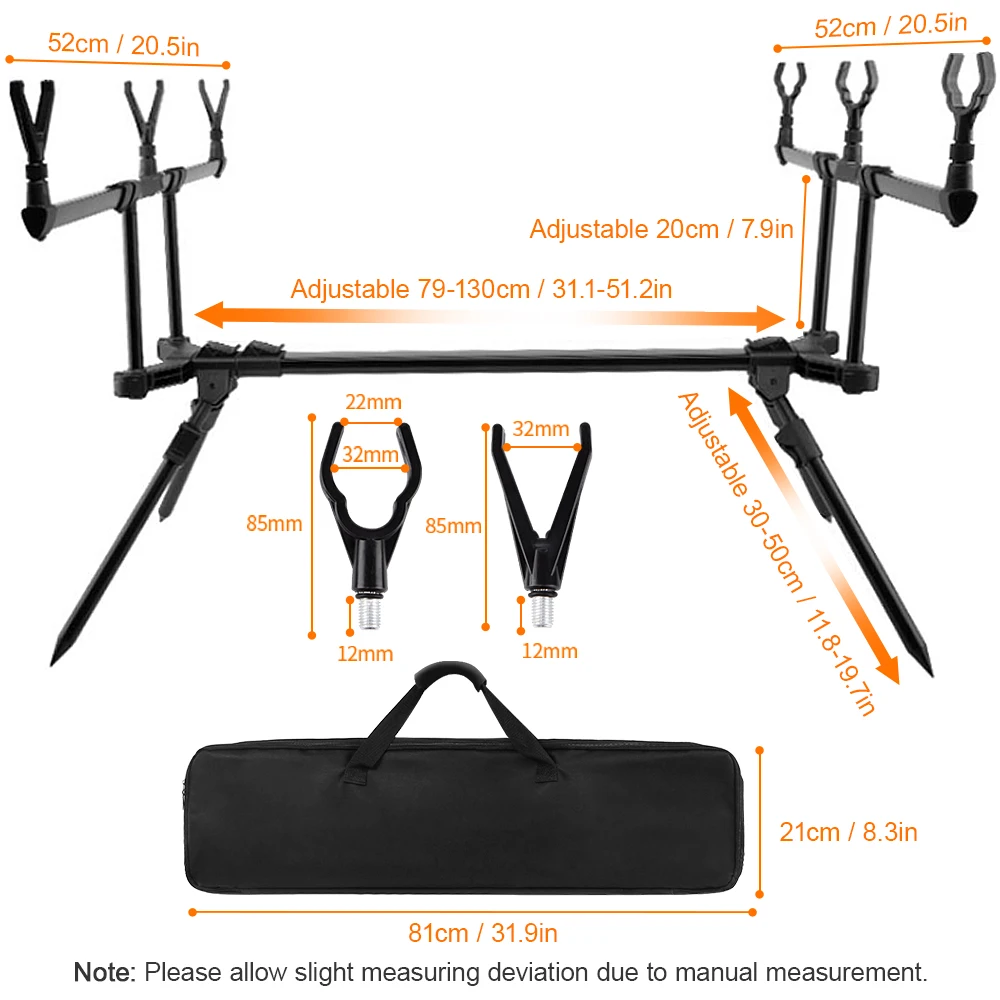 Этот набор рыболовных инструментов включает в себя регулируемую подставку для удочки, 3 будильника для рыбалки и 3 крючка для рыбалки, прекрасный подарок для любителей рыбалки. Особенности: Подставка для стержня: Прочная и прочная конструкция из алюминиевого сплава. Простота установки и демонтажа. Масштаб горизонтально и вертикально. Острый и стабильный четырехточечный наземный контакт для более прочной поддержки. Поставляется с сумкой для переноски, удобной для складывания и транспортировки. Подходит для рыбалки в водохранилищах, реках, прудах, озерах и т. д. Сигнализация укуса: Регулируемый тон, громкость и чувствительность для удовлетворения ваших потребностей. Аудио и визуальные оповещения позволят вам не пропустить укуса и облегчить вашу рыбалку. Легкий и водостойкий. 2,5 мм разъем для внешних продуктов. Приманка свингер: Открутите головку и положите ее в светящаяся палку (не входит в комплект) в качестве индикатора в темноте. Металлическая головка для натяжения линии для улучшения чувствительности. Легко соединяется с сигнализацией (не входит в комплект) для легкой рыбалки. Характеристики: Материал: алюминиевый сплав, металл, ABS Цвет: черный и синий Длина стойки: регулируемая 70-130 см/31,1-51,2 дюйма Длина цепочки: 23 см Светодиодный номер: 2 Светодиодный Цвет: синий Батарея: 1*9 В батарея (не входит в комплект) Винт Диаметр: 0,8 см/0.31in Посылка: 81*21*7 см/31,9*8,3*2,8 дюймов Вес посылка: 2700 г/6 фунтов Посылка: 1 * стойка 2 * Базз бар 4 * короткая планка 3 * u-образная головка для отдыха 3 * V-образная головка для отдыха 3 * Сигнализация укуса 3 * свингер 1 * сумка для хранения