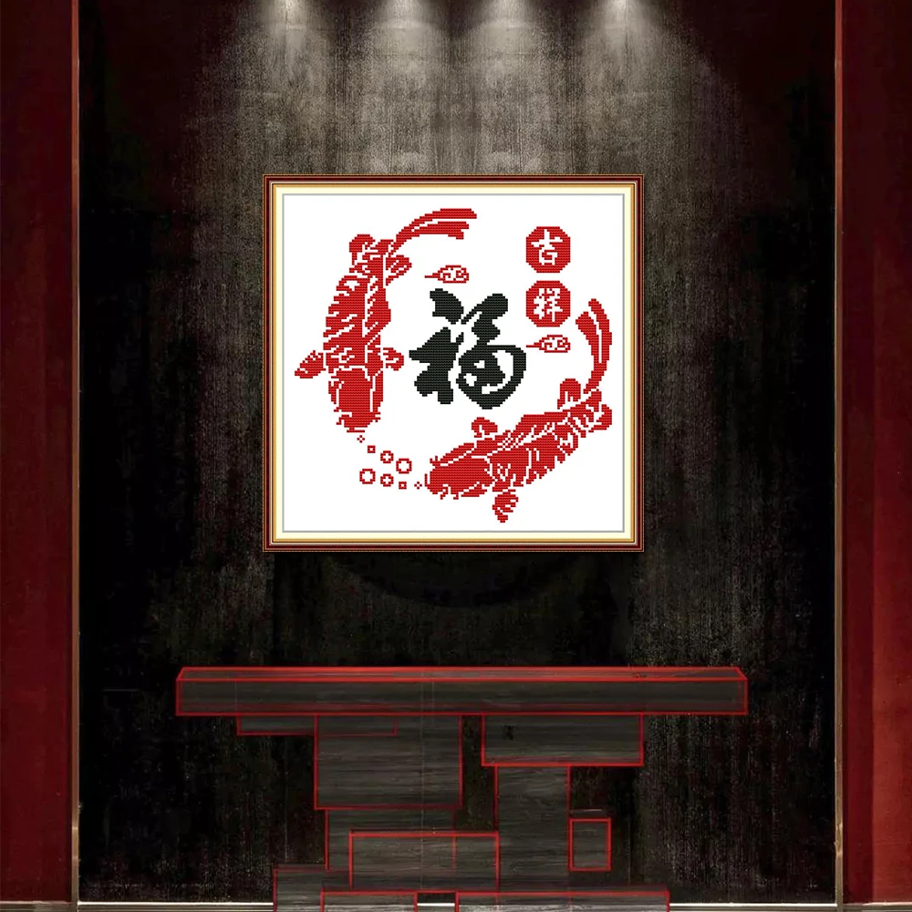 Joy Sunday благословение Z682 подсчитанный штампованный домашний декор китайская рыба приносит новый год удачи наборы для вышивки крестиком с животными