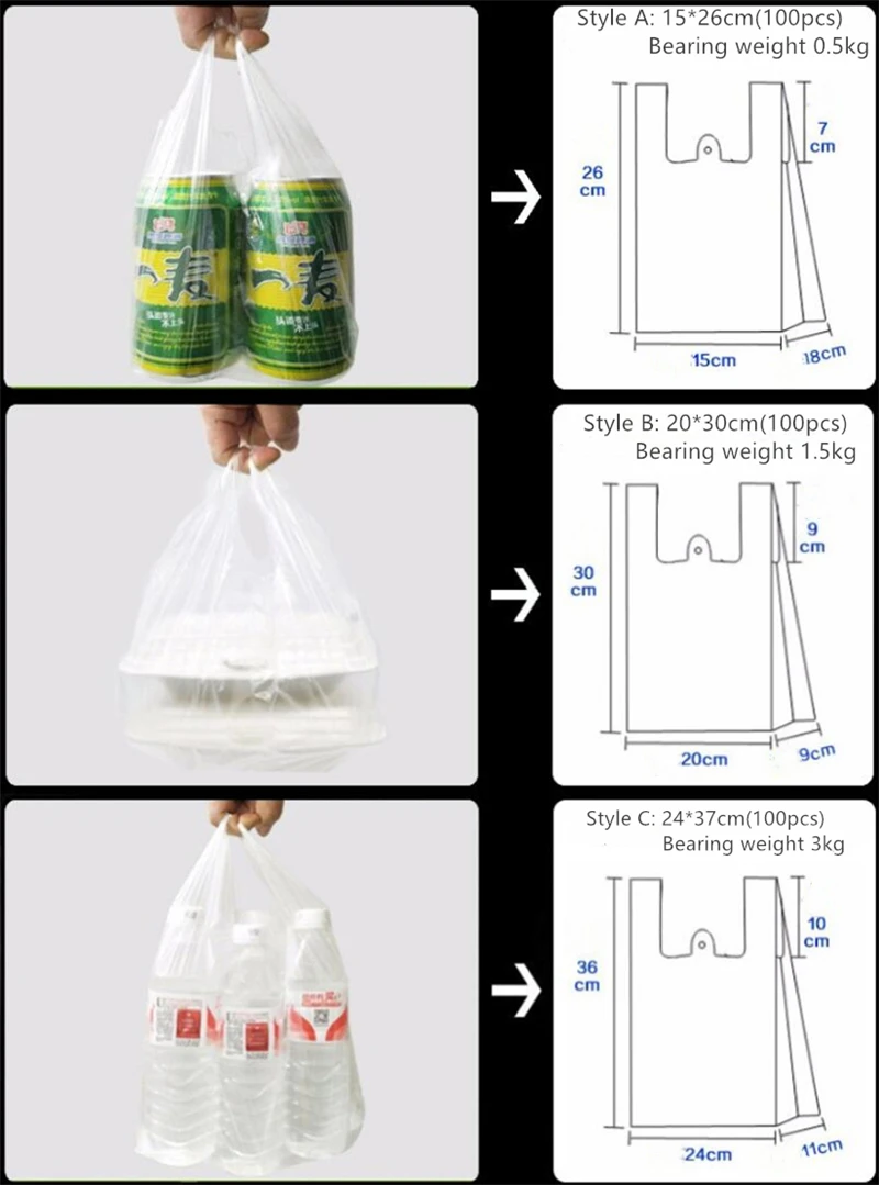 100 шт./упак. прозрачные сумки хозяйственная сумка супермаркета Пластик сумки с ручкой Еда Упаковка 15-26 см/20-30 см/24-37 см/28-48 см