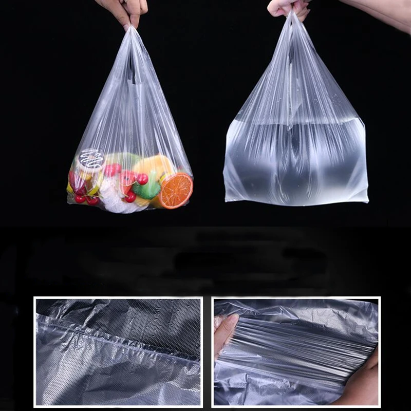100 шт.упак. прозрачные пакеты, сумка для покупок, пластиковые пакеты для супермаркета с ручкой, упаковка для еды