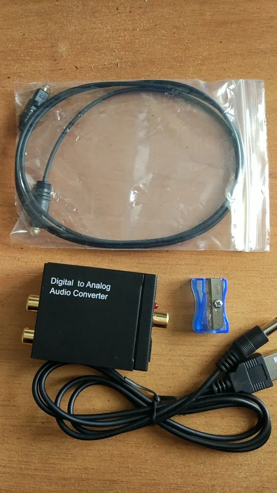 -1 х цифро-аналоговый аудио конвертер с аудио AUX 3,5 мм Джек;-1 usb-кабель;-1 Руководство пользователя;-1 x Оптический кабель (кабель Toslink);