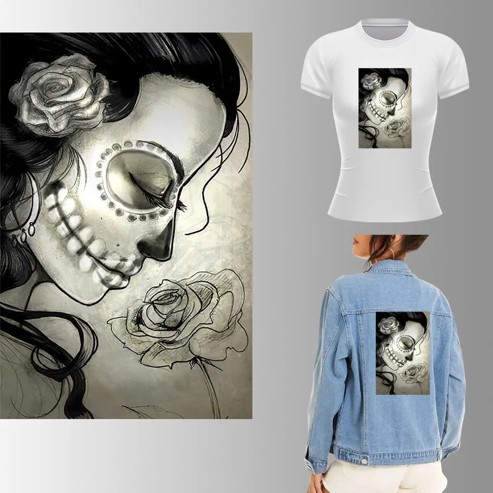 Новый Череп розовый цветок Переводные переводы Красота Женщины тепл...