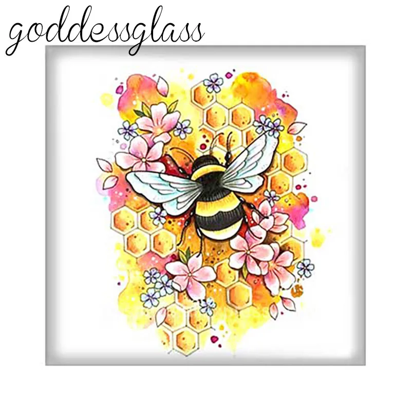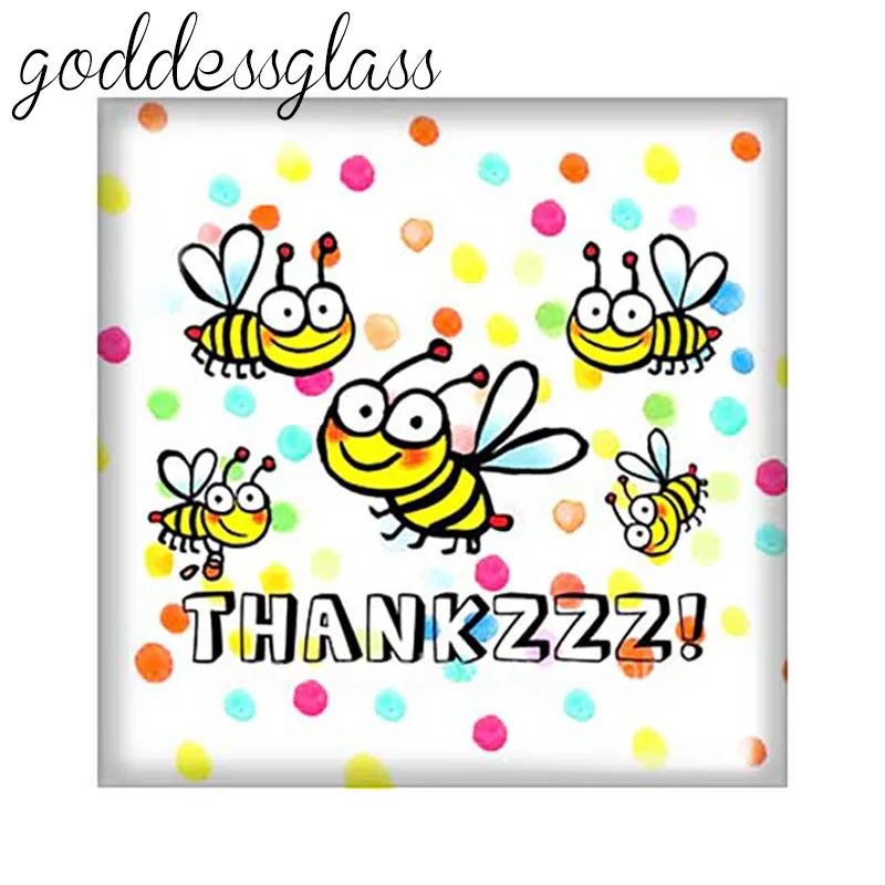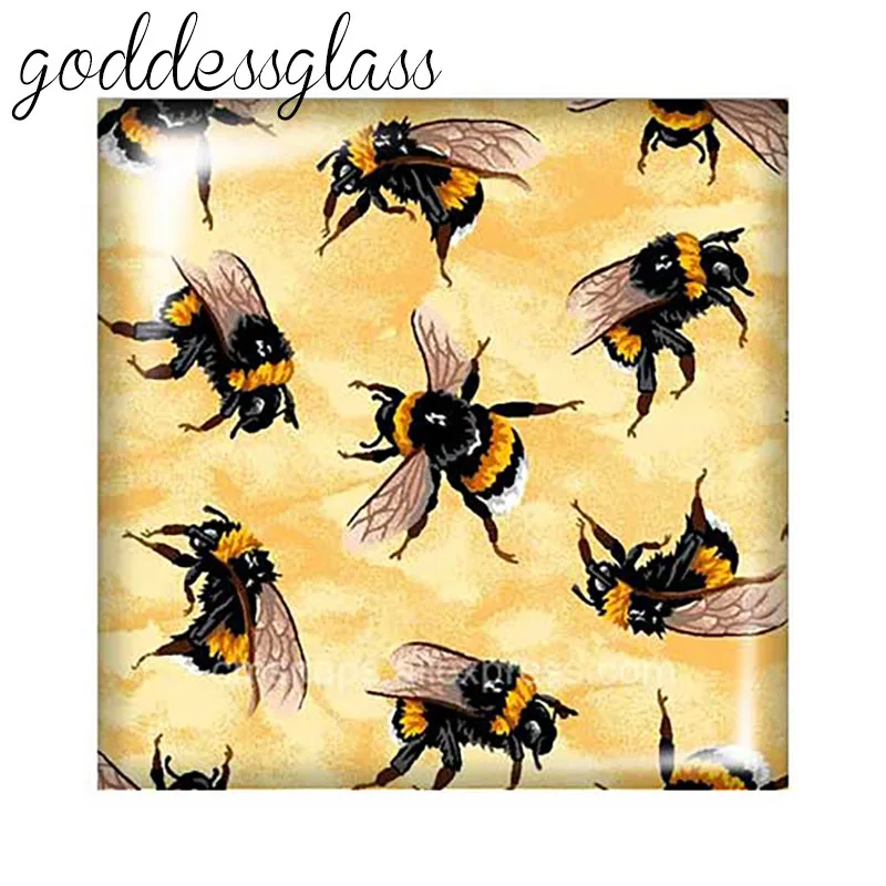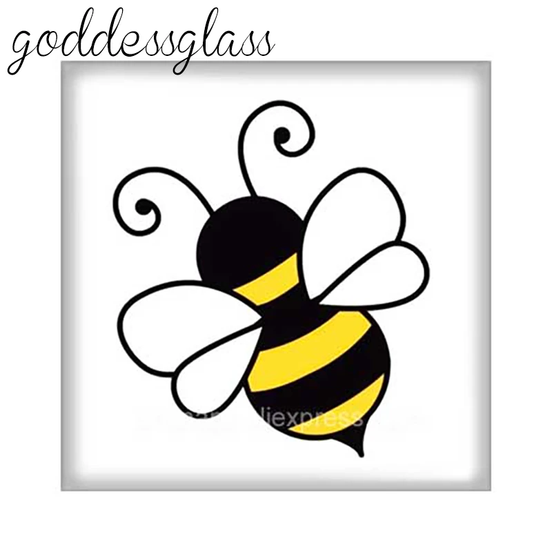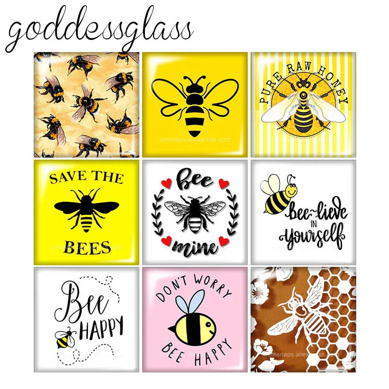 Новинка, милая пчела, счастливая пчела, счастливый квадрат, 10 шт., смешанные, 12 мм20 мм25 мм30 мм, фото, стеклянный кабошон, демонстрационная фурнитура с плоским основанием