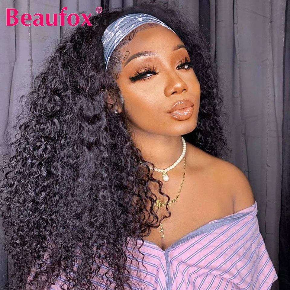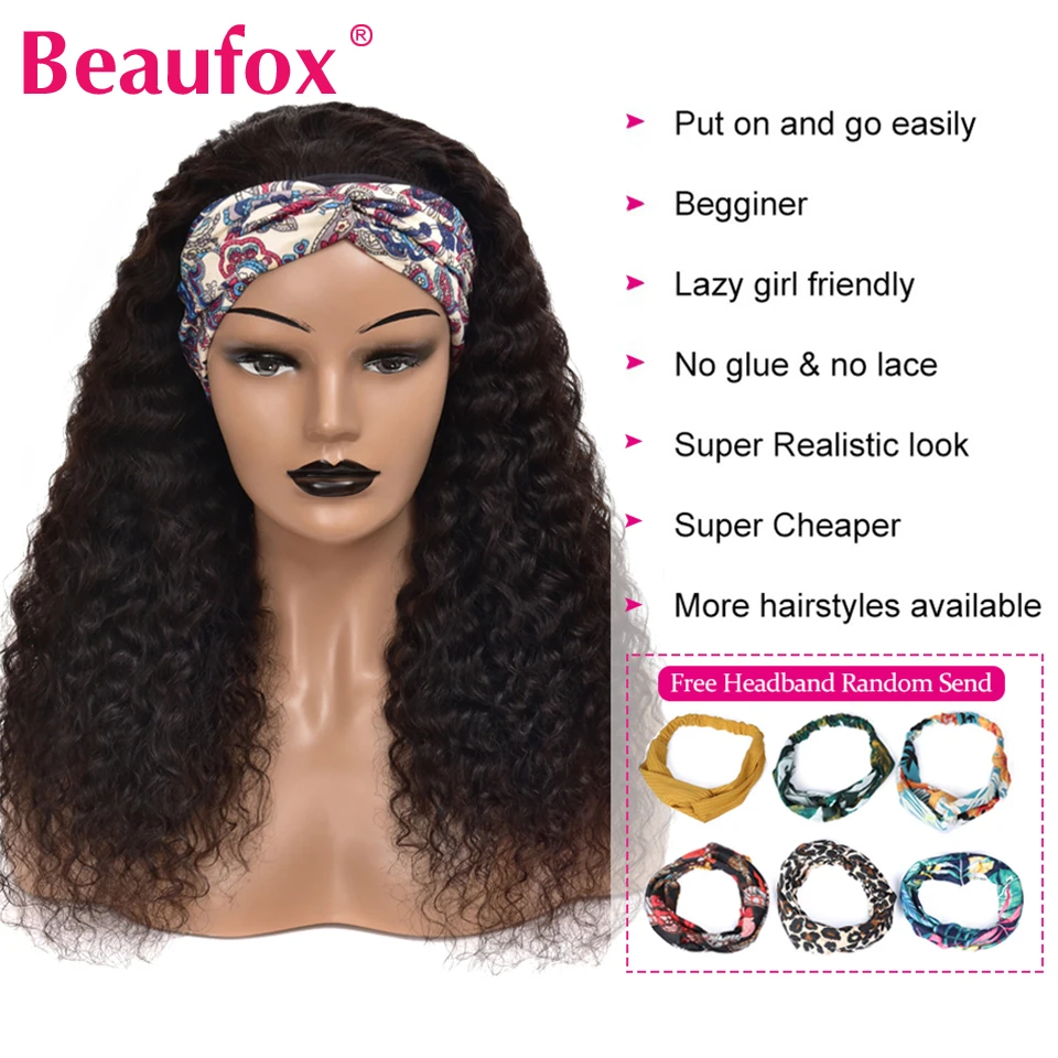 Beaufox кудрявый парик с головной повязкой человеческие волосы парики для женщин малазийский манекен для шарфа парика без шнурка Remy водная волна человеческие волосы парики с повязкой на голову
