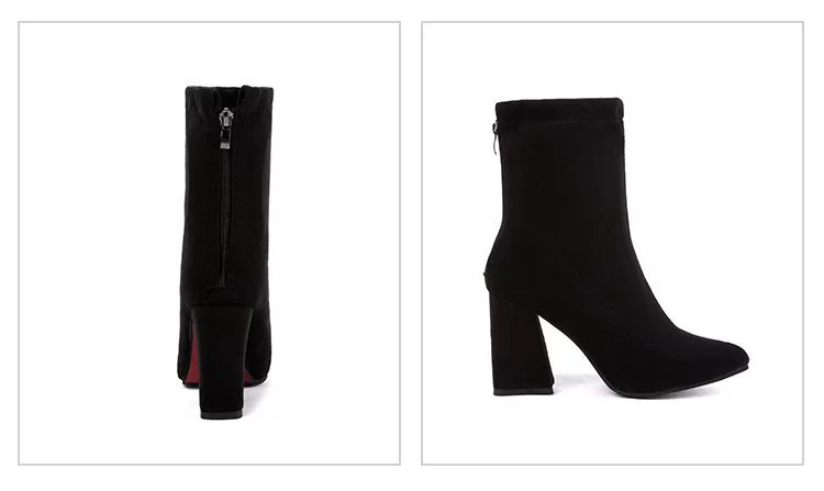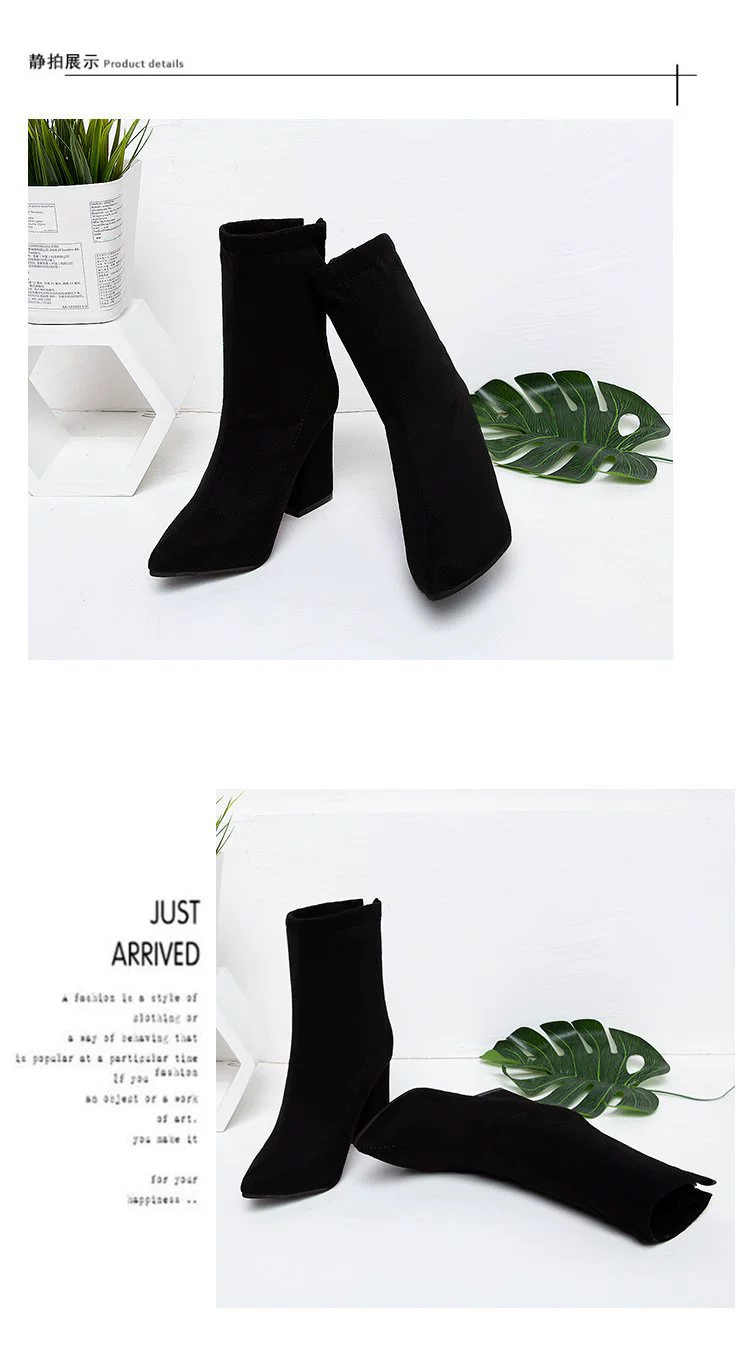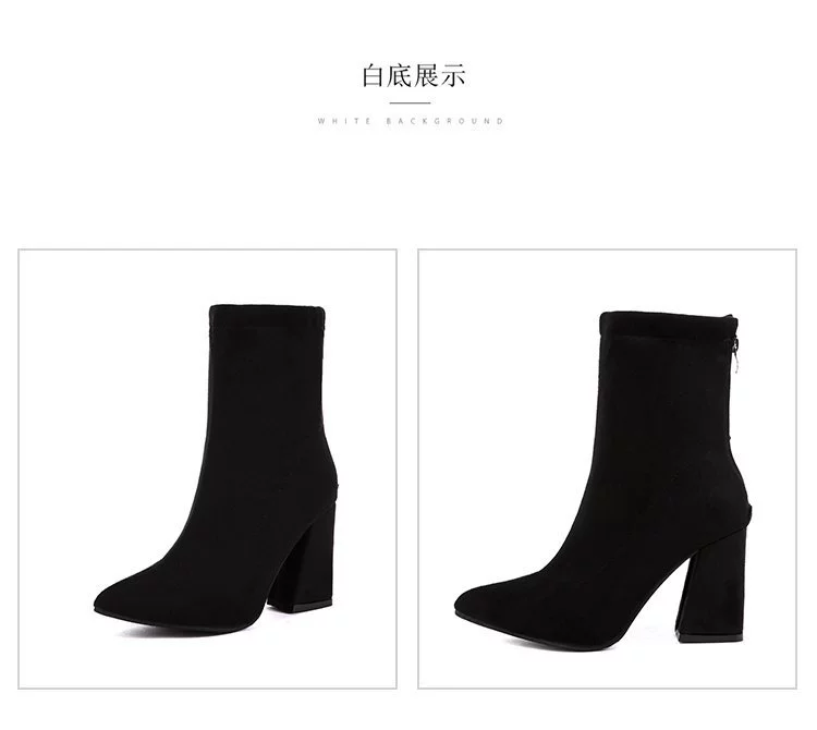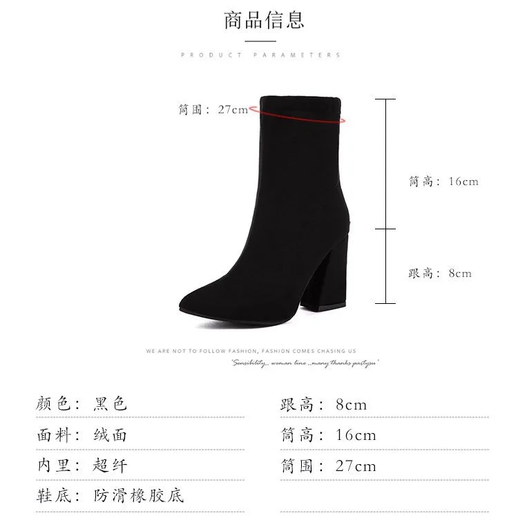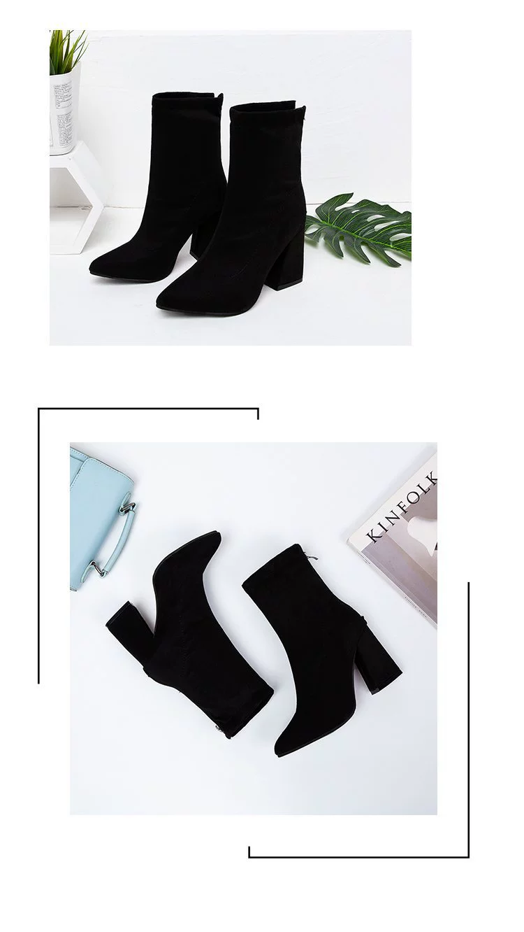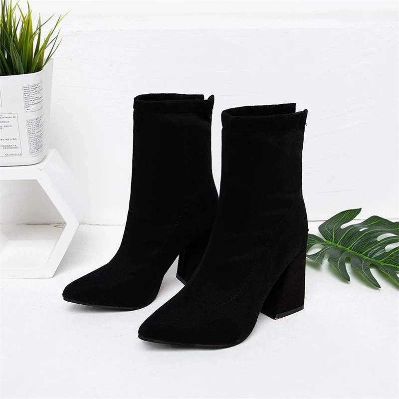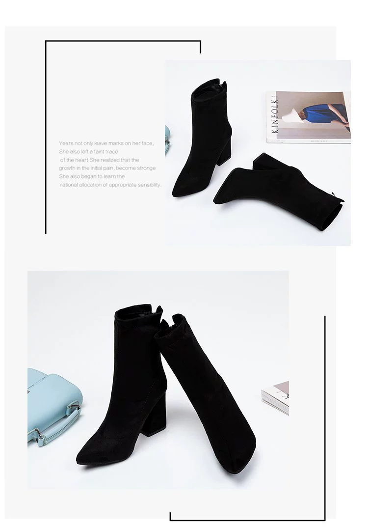 Женские удобные ботинки с острым носком, черные простые милые ботинки на молнии, на каблуке 8 см, для осени и зимы