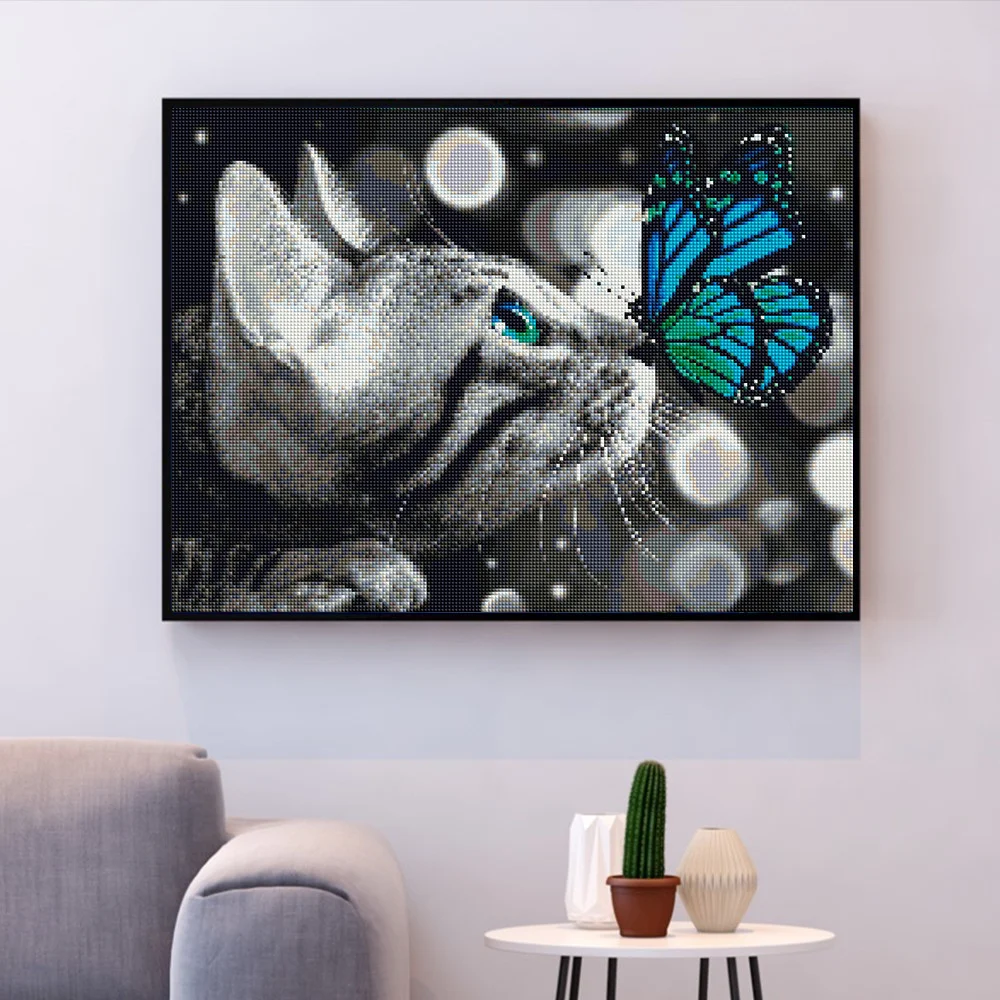 Алмазная 5D картина HUACAN сделай сам, животное, кот, полноразмерная мозаика, вышивка крестиком, Бабочка, украшение для дома