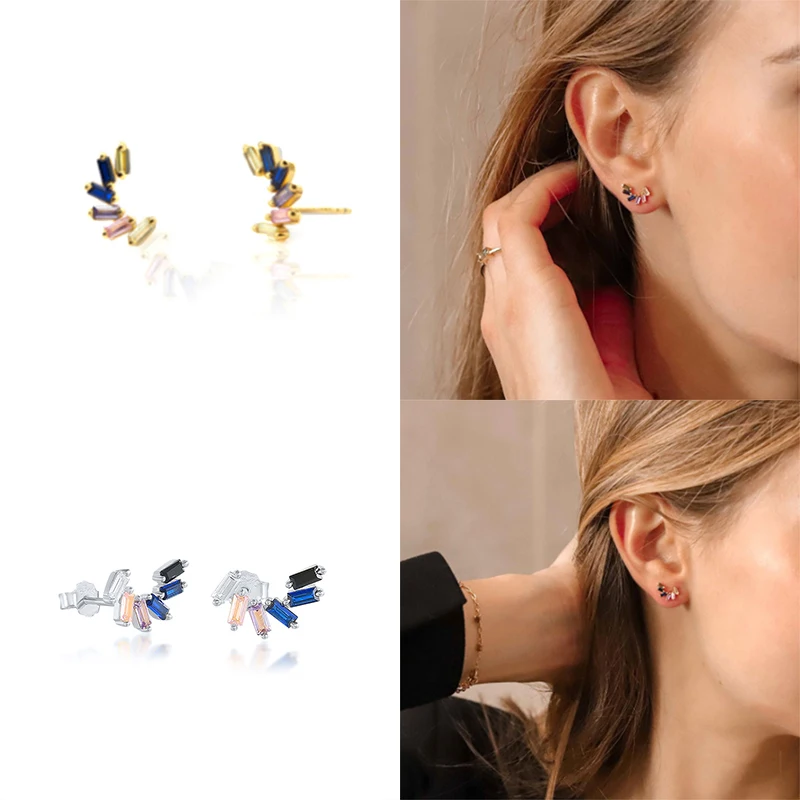 Автоклав 925 стерлингового серебра серьги для женщин Простой Квадратной Цветной циркон серьги-гвоздики, хорошее ювелирное изделие, модные серьги в форме