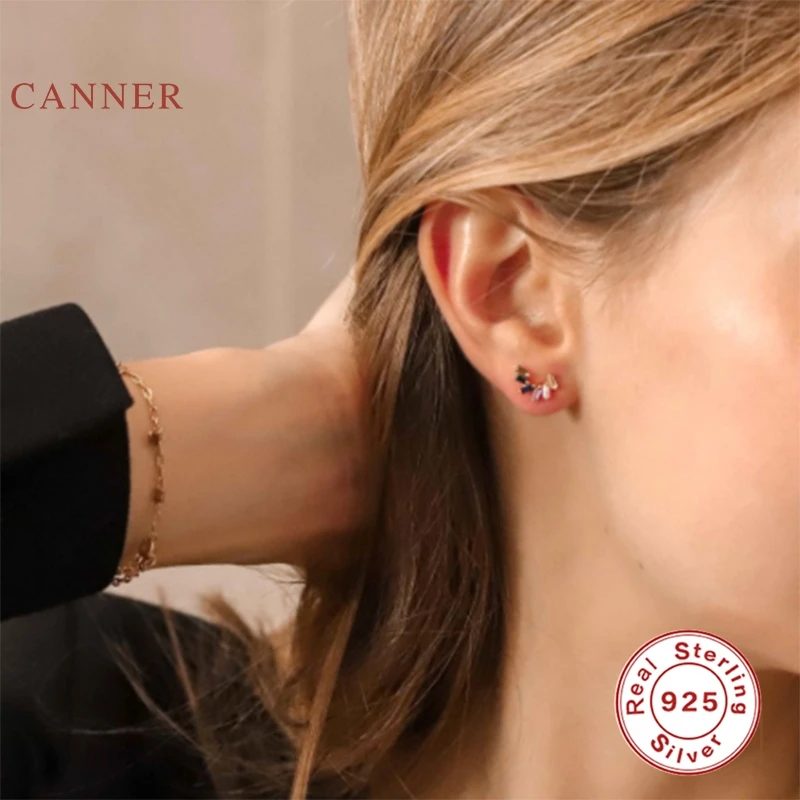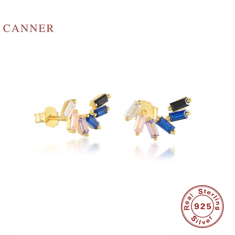 Женские простые серьги-гвоздики CANNER из стерлингового серебра 925 пробы с квадратным цветным цирконием, ювелирные украшения