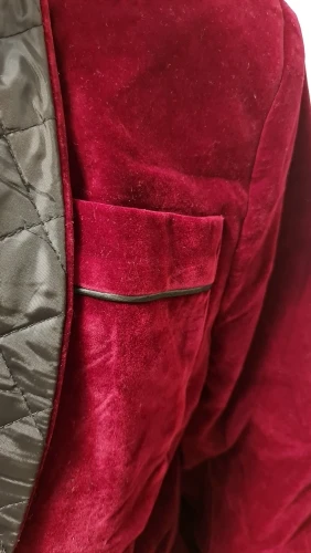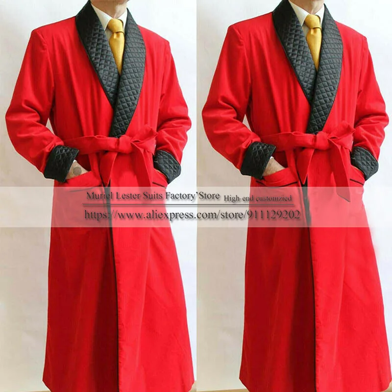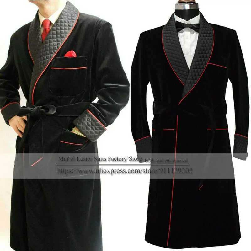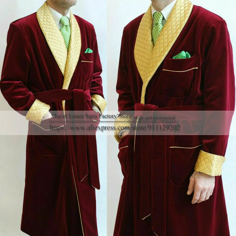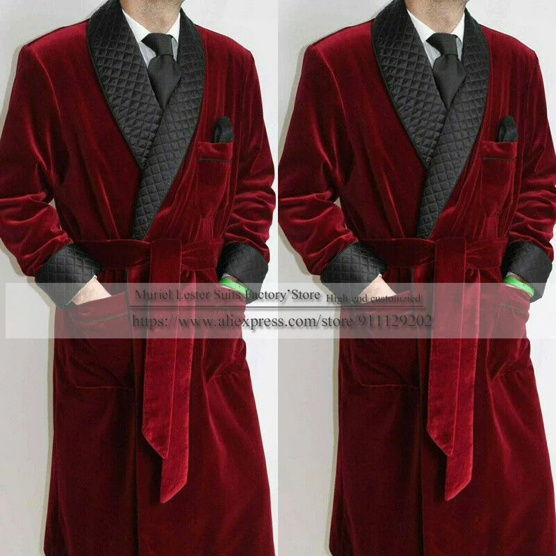 Мужское зимнее бархатное пальто бордового цвета, черный пиджак с отложным воротником, приталенный силуэт, с поясом