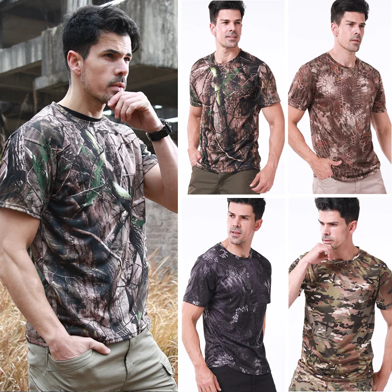 Мужская камуфляжная футболка с коротким рукавом, дышащие военные тактические футболки для активного отдыха, охоты, кемпинга, походов, Мужская брендовая одежда