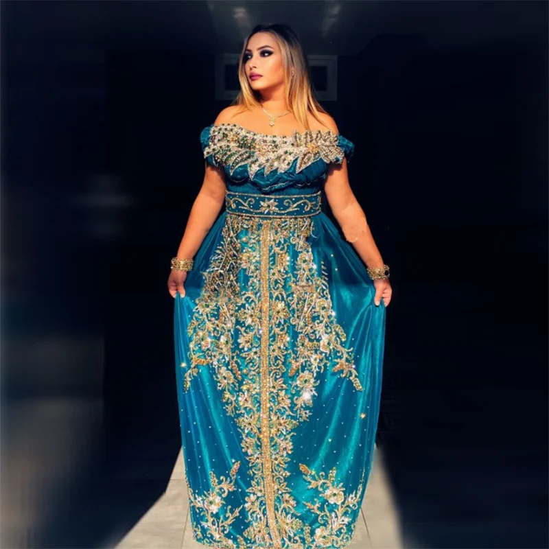 Алжирский марокканский кафтан для выпускного вечера, официальное платье с открытыми плечами и бусинами, аппликация, саудовская лампа, исламское платье для особых случаев