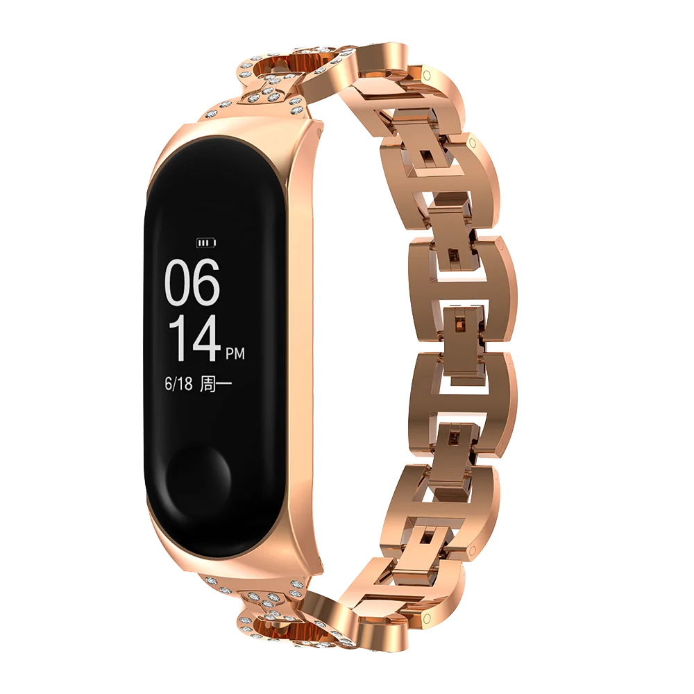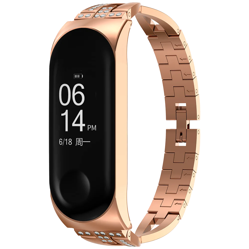 Сменный ремешок для часов Xiaomi Band 3, 4, 5, 6, из нержавеющей стали, розовое золото, для Mi Band 5