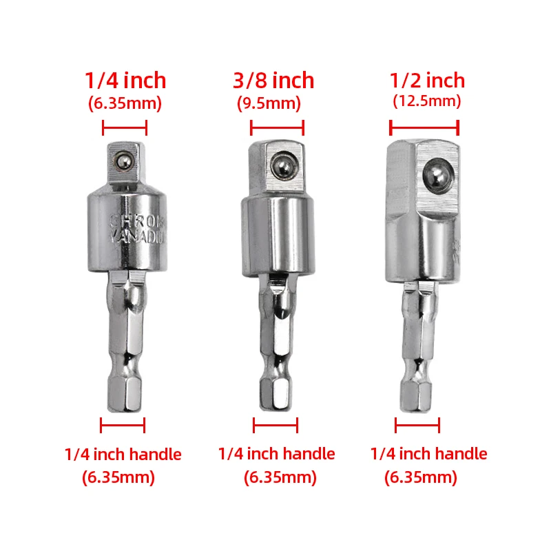 Адаптер для ударной дрели, переходник с шестигранным хвостовиком на квадратное гнездо для дрели, поворотное удлинение 14 дюйма, 38 дюйма, 12 дюйма