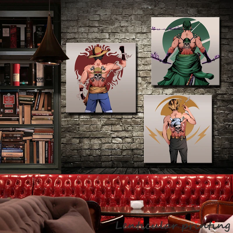 Японский анми цельный плакат Луффи сандзи Зоро Печать холст для домашнего декора красивый анимационный мальчик Картина Бар Настенный декор