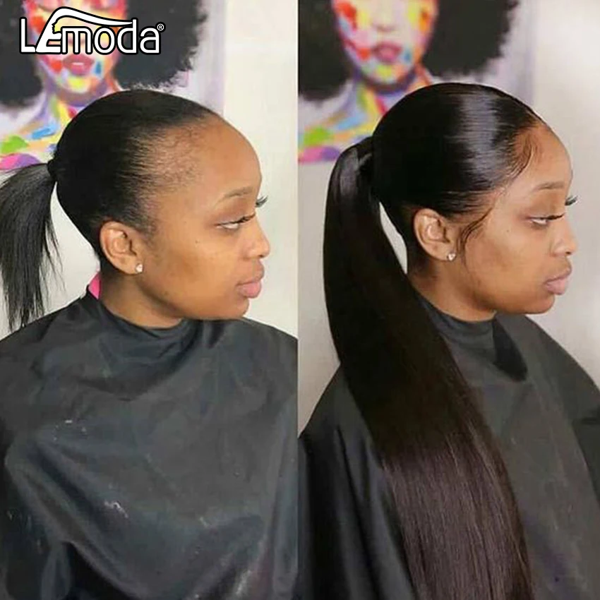 Прямые волосы на шнурке для наращивания конский хвост Remy 10-28 дюймов длинный зажим для конского хвоста Lemoda бразильские прямые человеческие волосы