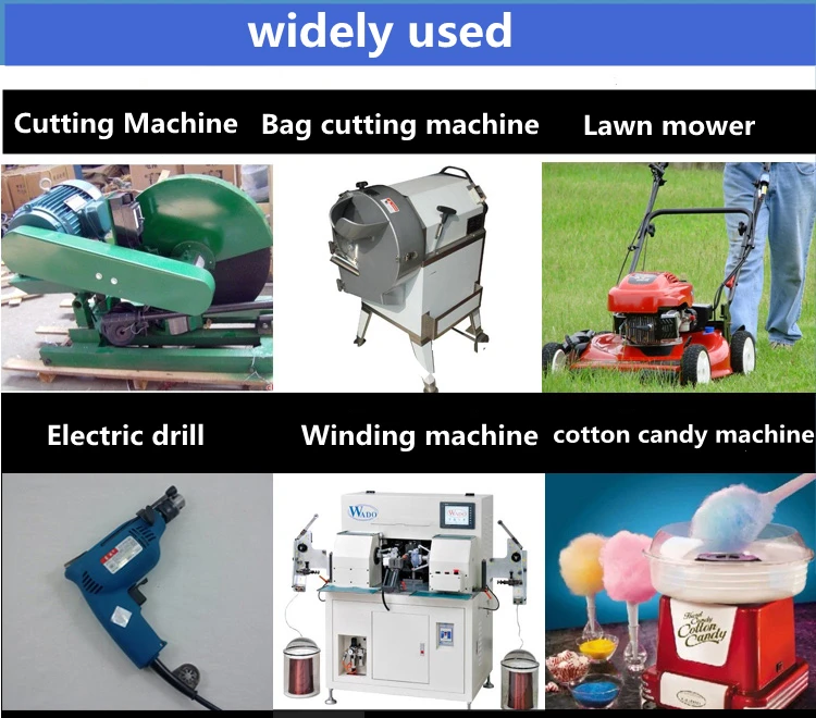 Машина для резки, машина для резки мешков, газонокосилка, электрическая дрель, машина для намотки, машина для производства хлопковых конфет и так далее.