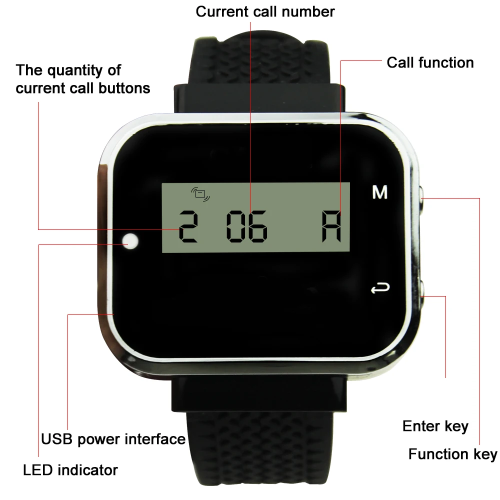 Беспроводная пейджинговая система, телефонный приемник, черный и кнопочный передатчик, большой радиус действия, для обслуживания ресторанов, кафе, магазинов