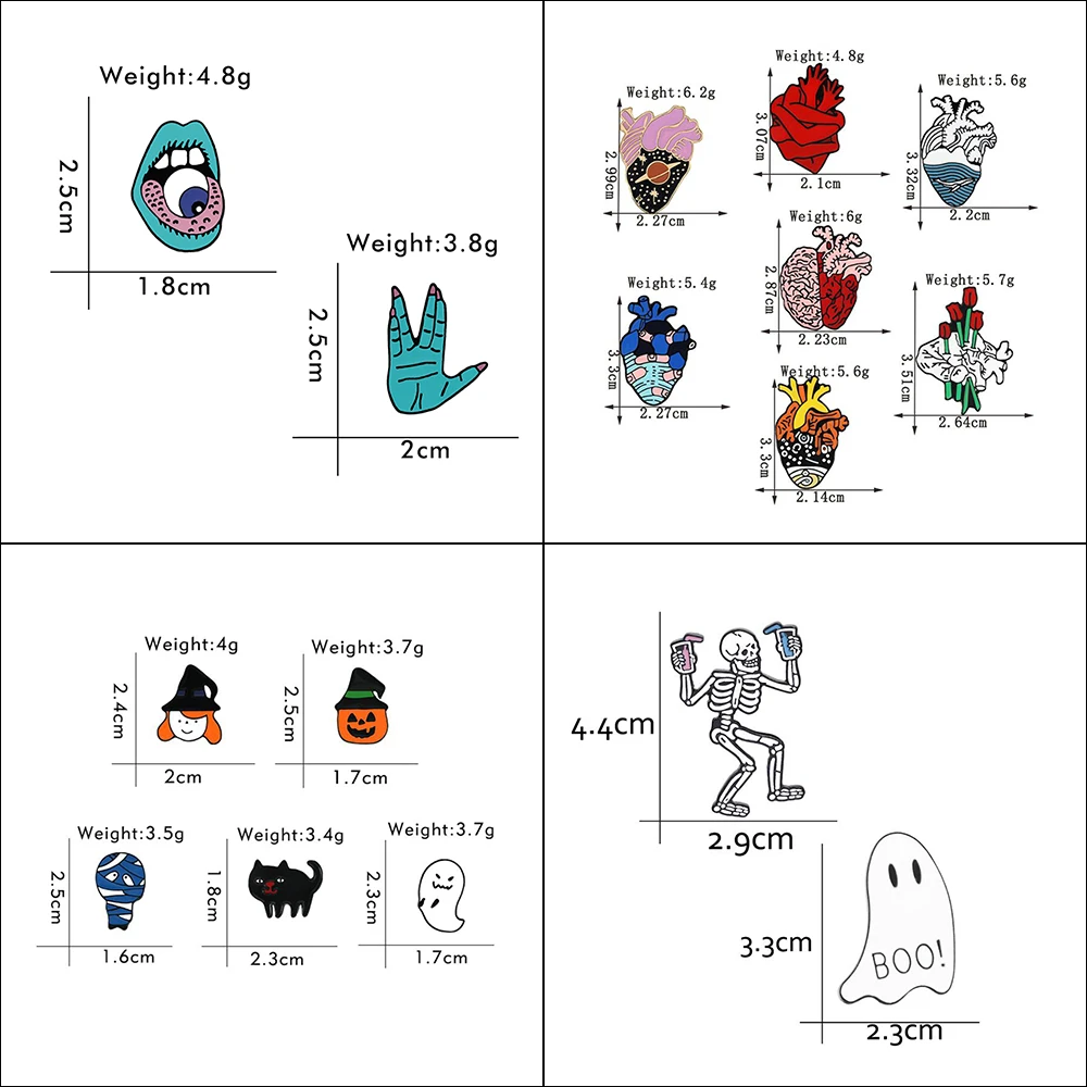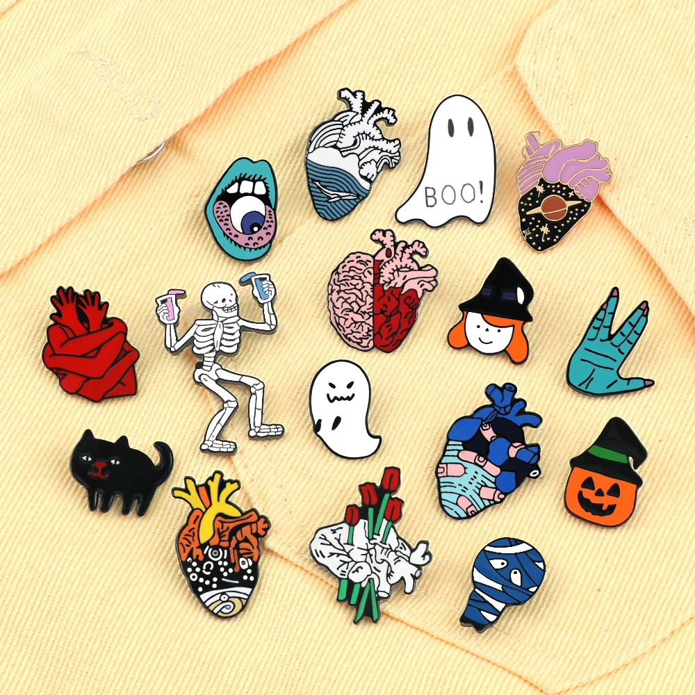 Брошь на булавке, 2-7 шт.компл., с эмалью, в виде черепа на Хэллоуин, брошки в виде привидений
