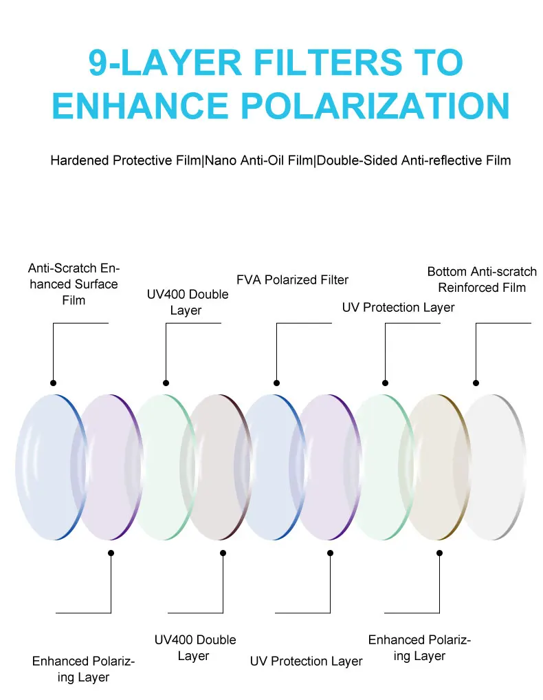 1. 【Защита от ультрафиолета 】Поляризованные солнцезащитные очки используют очень хороший материал для безопасности и ударопрочности, и он выделяется своей Сверхлегкой, четкой, эластичностью, стабильностью и ударопрочностью. Защита UV400 покрытие, Блокирует 100% вредных UVA и UVB лучей. Восстанавливает истинный цвет, устраняет отраженный светильник и рассеянный светильник.
