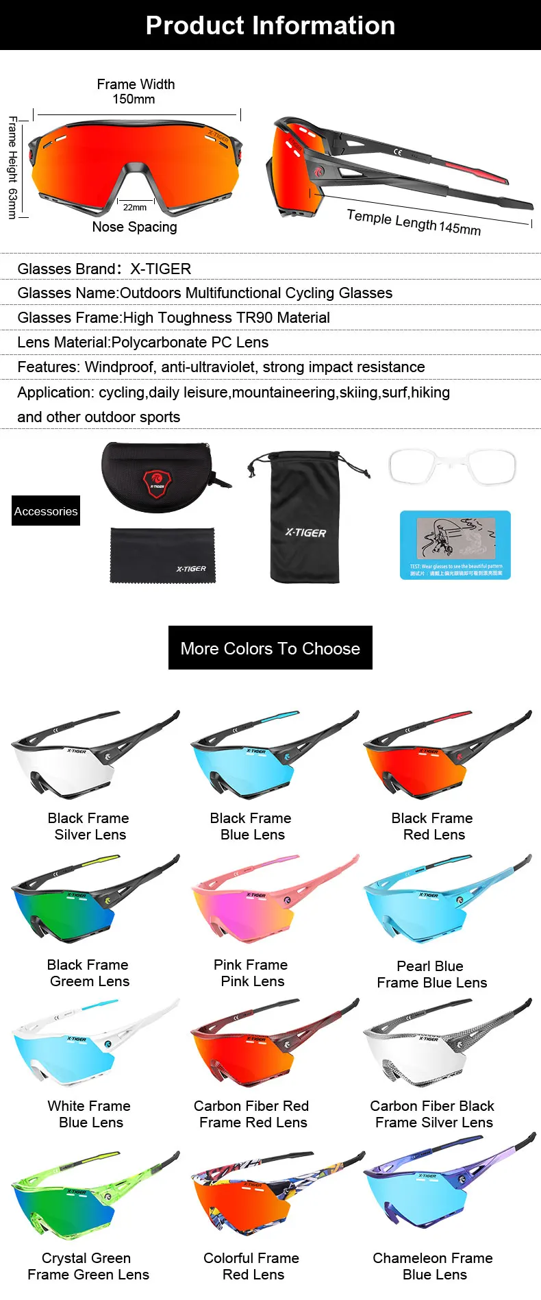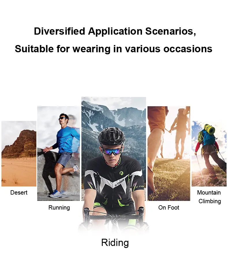 2. 【Легкий дизайн 】-Сверхлегкая рама весом всего 19 г. Два мягких резиновых носоупоров, позвольте вашему носу чувствовать себя комфортно. X-TIGER спортивные поляризованные солнцезащитные очки идеально подходят для езды на мотоцикле, велоспорта, вождения, бега, бейсбола, рыбалки, гонок, гольфа и альпинизма, треккинга. Внутренняя оправа используется для близоруких линз.
