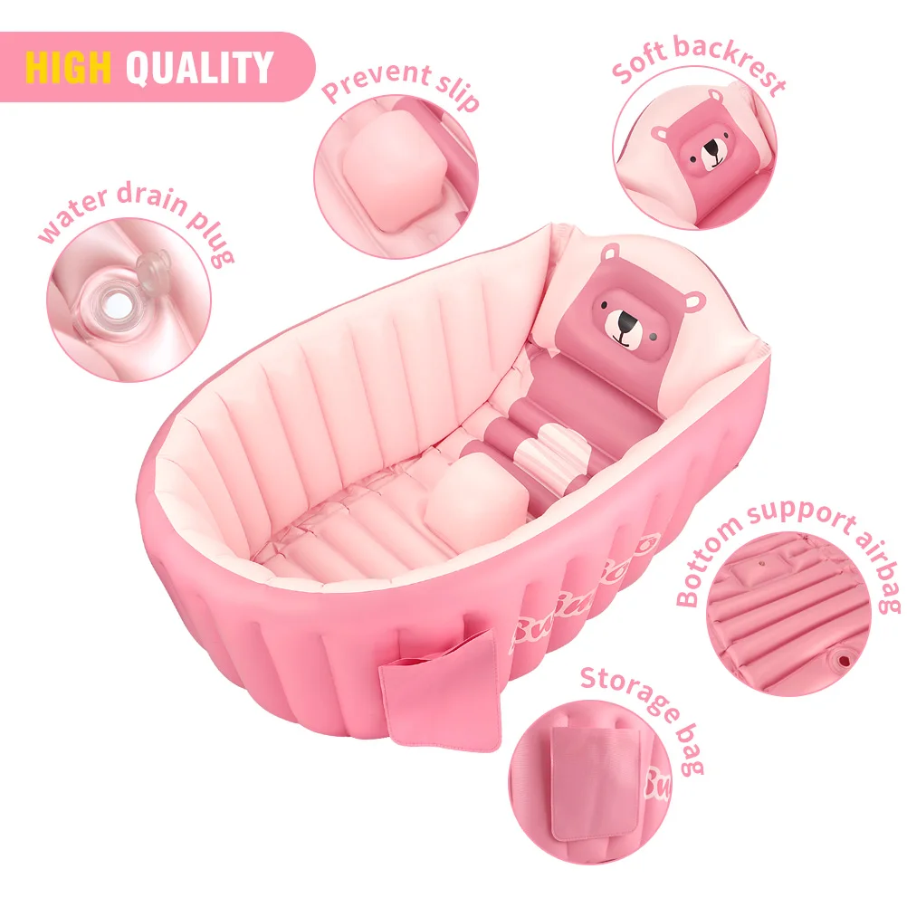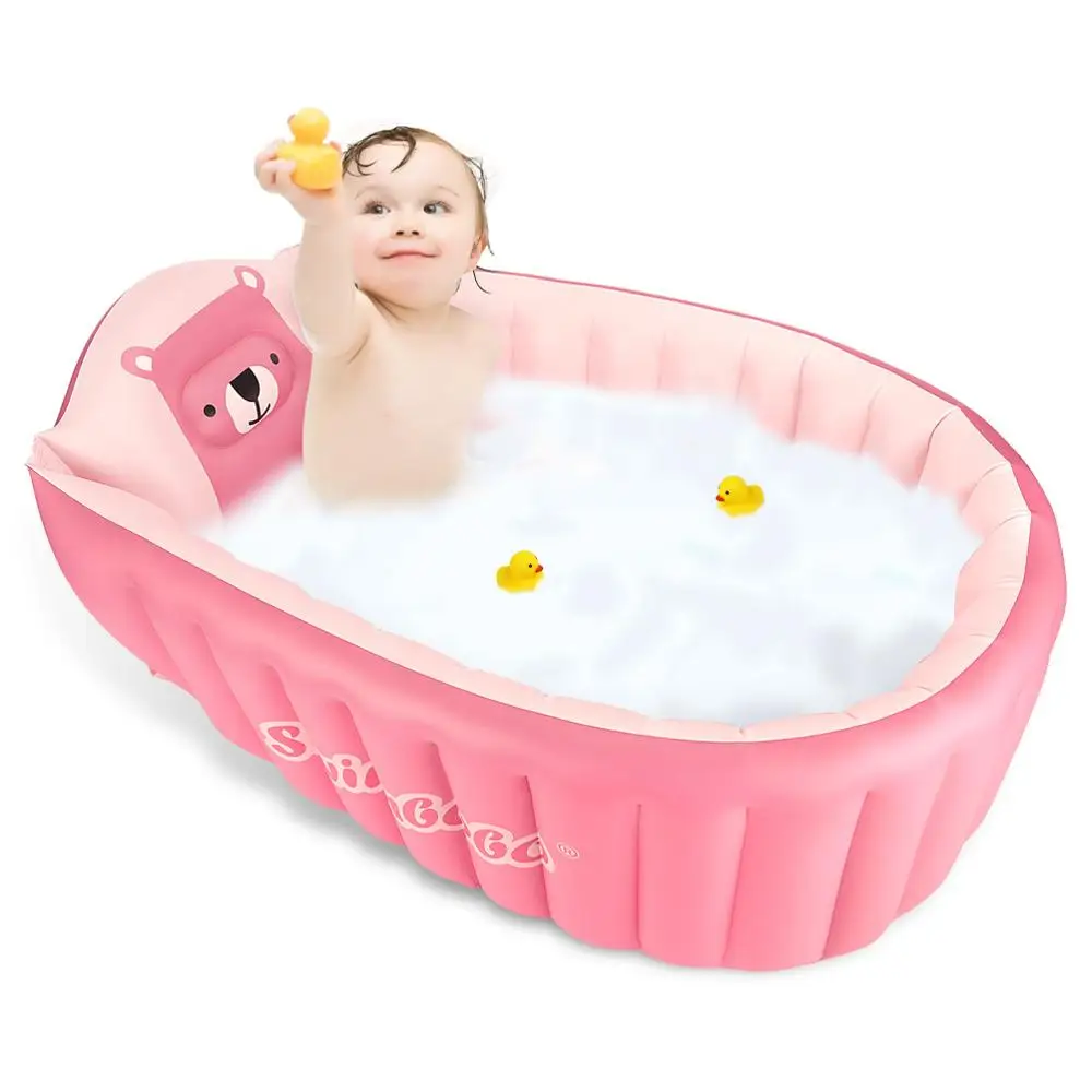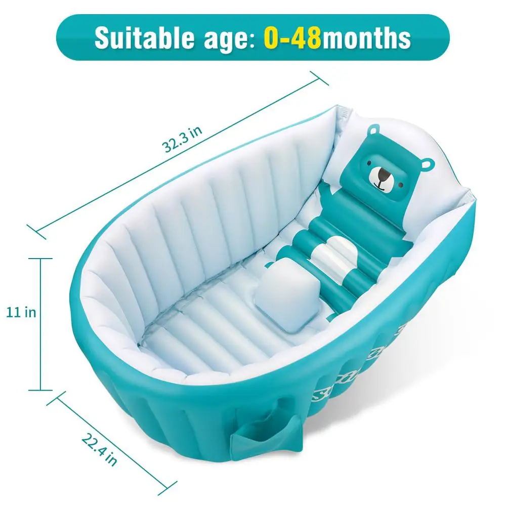 Надувное детское кресло для ванны, сиденье для купания с симпатичным медведем, нескользящее, для бассейна, для малышей, портативная складная раковина для душа